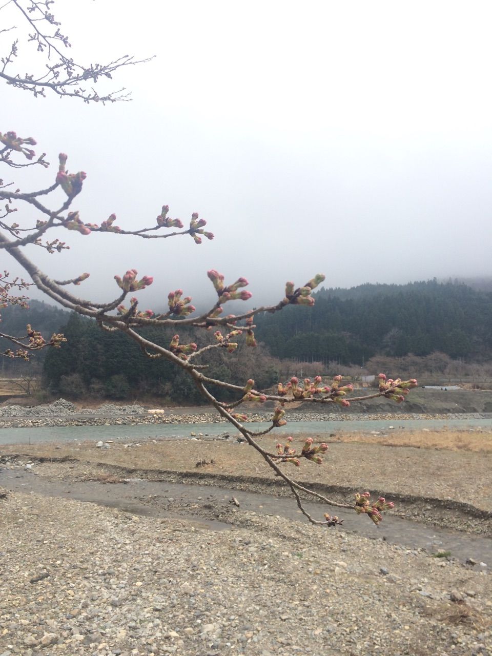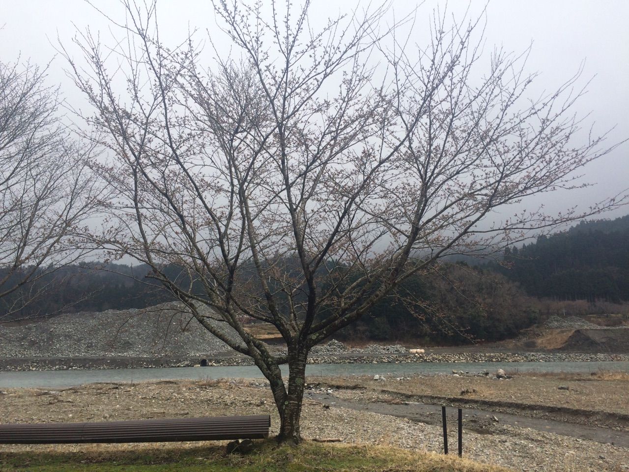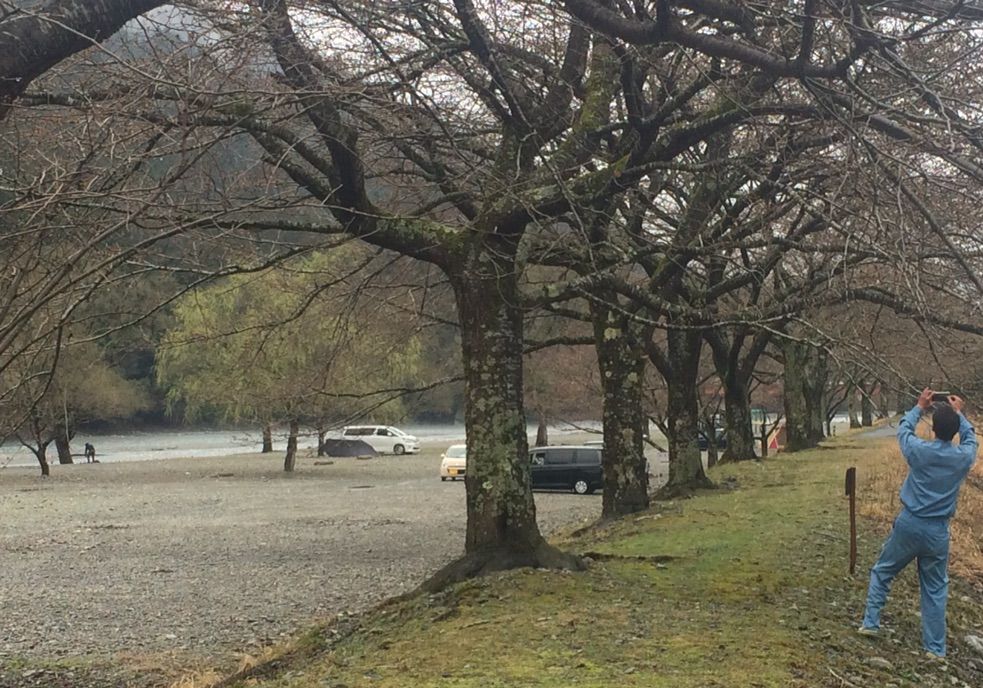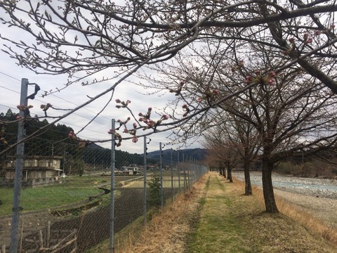 対岸の道の駅前の桜並木も昨晩の豪雨と強風で散って景色が変わりました。