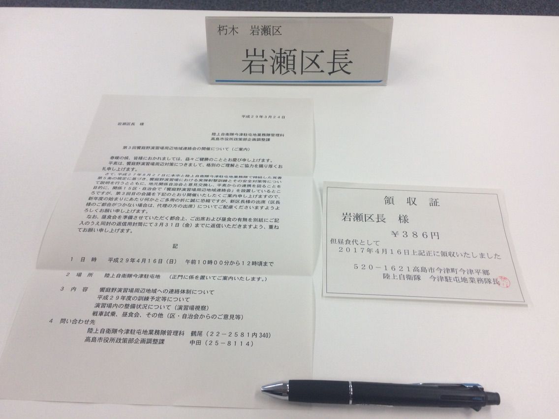 今日は陸上自衛隊今津駐屯地にて、地域の自治会区長対象に演習場周辺対策説明会に参加してきました。