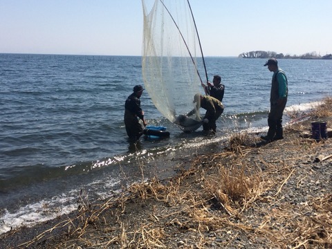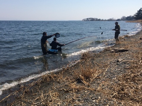 行く道中に、琵琶湖で追いさで漁をされていたのでしばし見学してました。場所は湖西線近江今津駅より5kmほど北の浜分という地区。