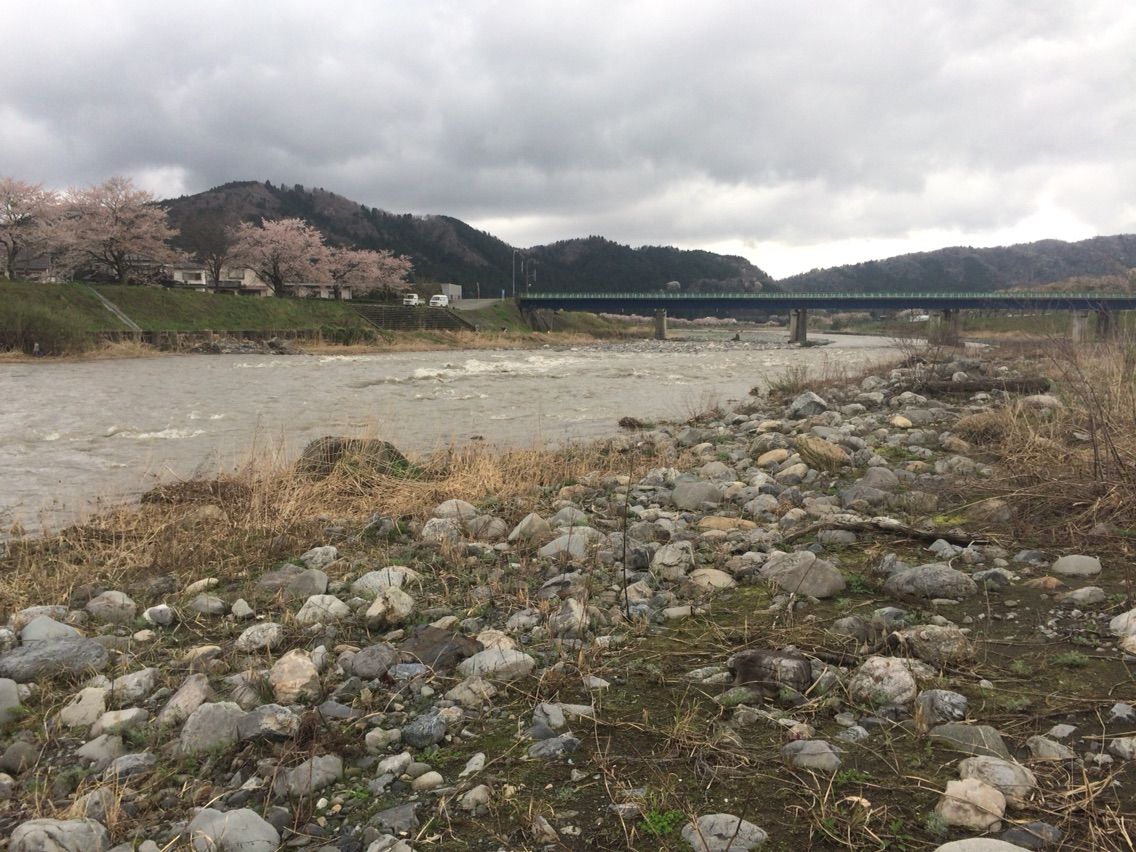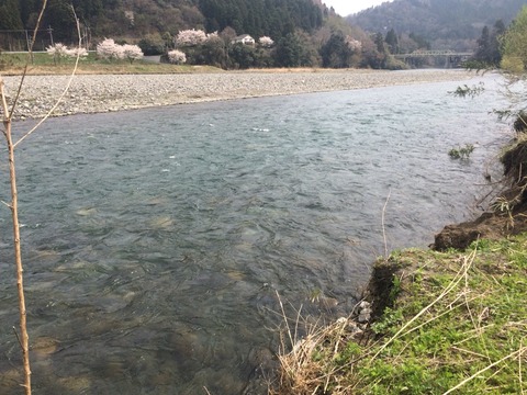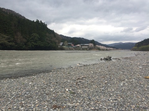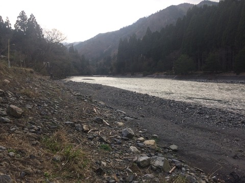 その後、弁天瀬上流のから古川電線下へ、泥濁りで石の状態は何もわかりません。弁天瀬は昨年とほぼ変わりないですが、この辺り古川堰堤〜古川電線下はここ数年毎年荒れ放題です。