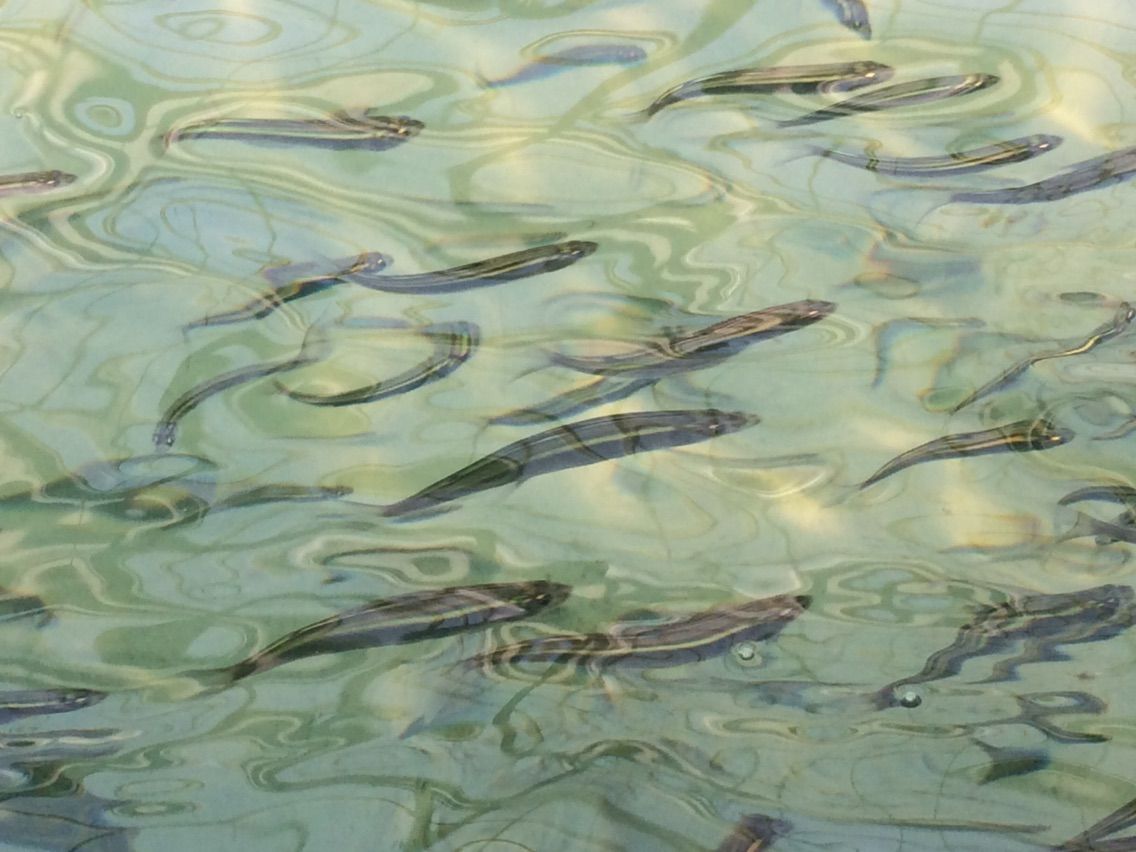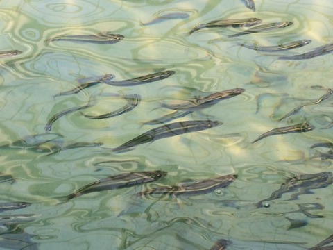 その後、いつも鮎の種苗を仕入れている業者さんのとこに喋りに行き、最近入荷したとっても貴重な琵琶湖の稚鮎を見学しました。
