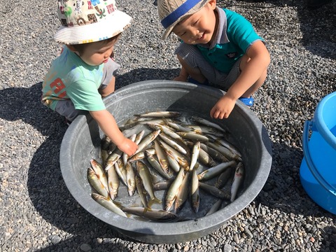 『釣竿が親御さんの1本しかないし、付いていくお子様の入川券は要りませんよ。』