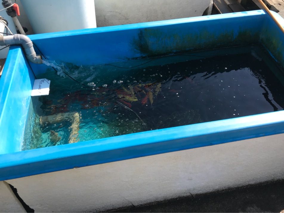 買ってきた錦鯉は水温が15℃を超える来春まで餌を切って越冬してもらいます。