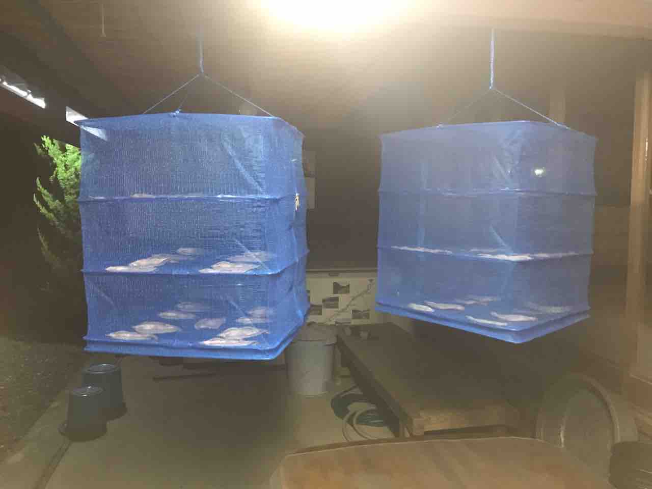 在庫の内からデカいオス鮎は晴天の日を見計らい開きを作って仕舞っていくつもりです。