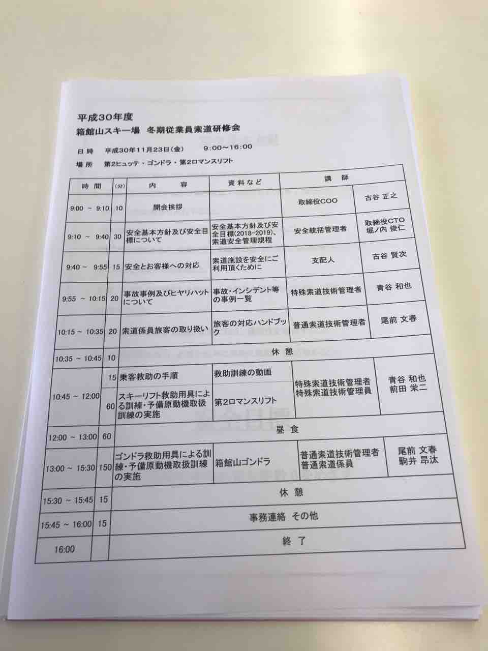 箱館山スキー場の索道従業員の研修会があり