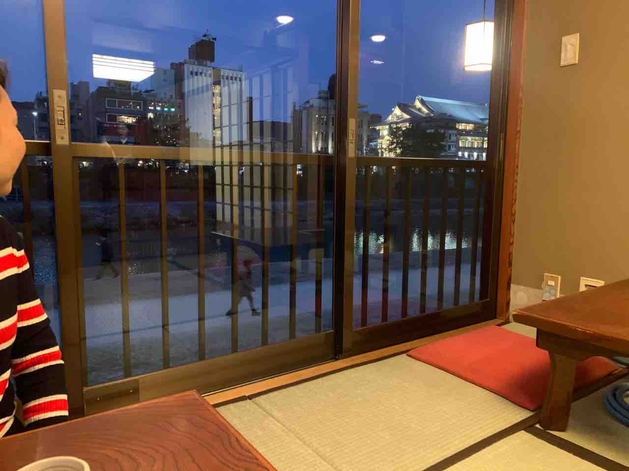 南座が見える2階の御座敷に通して頂きました。