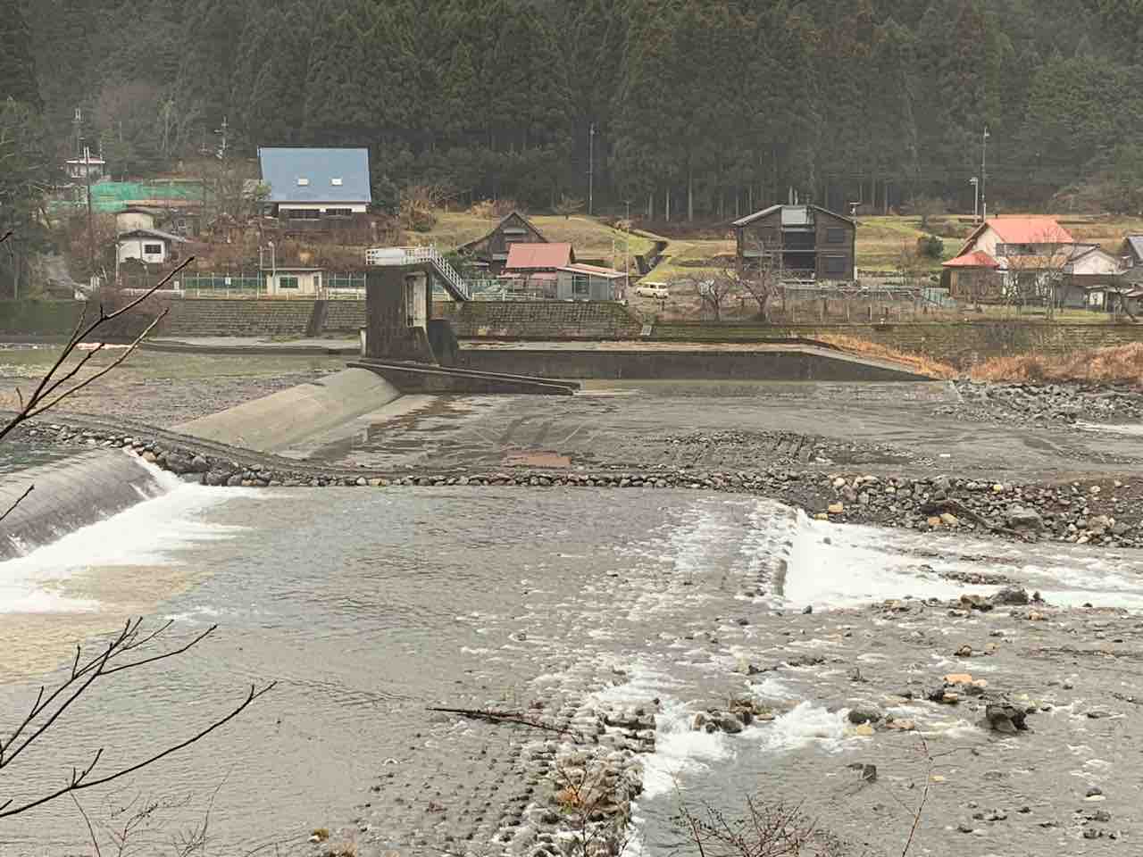 古川堰堤の対岸から