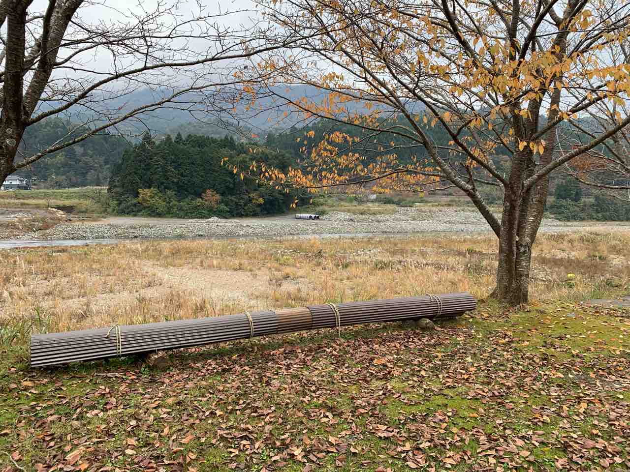今日は堤防の丸太のベンチに雪対策のトタン巻きをしました。