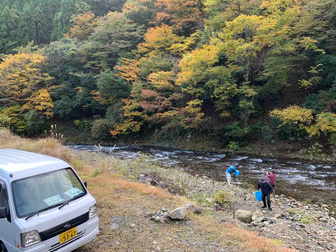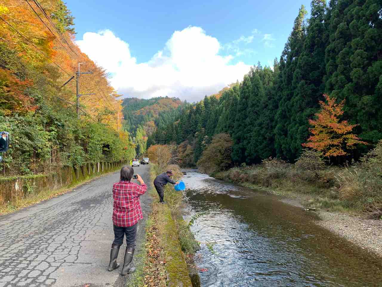 紅葉🍁の絶景を見ながらの放流はなかなか風情のある作業ですので、ブログにもええ感じの画像が載せられるなぁと楽しみにしています。