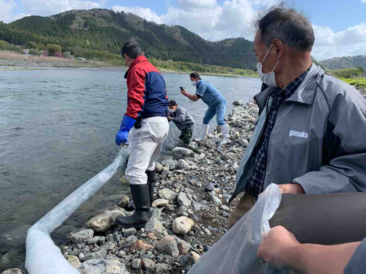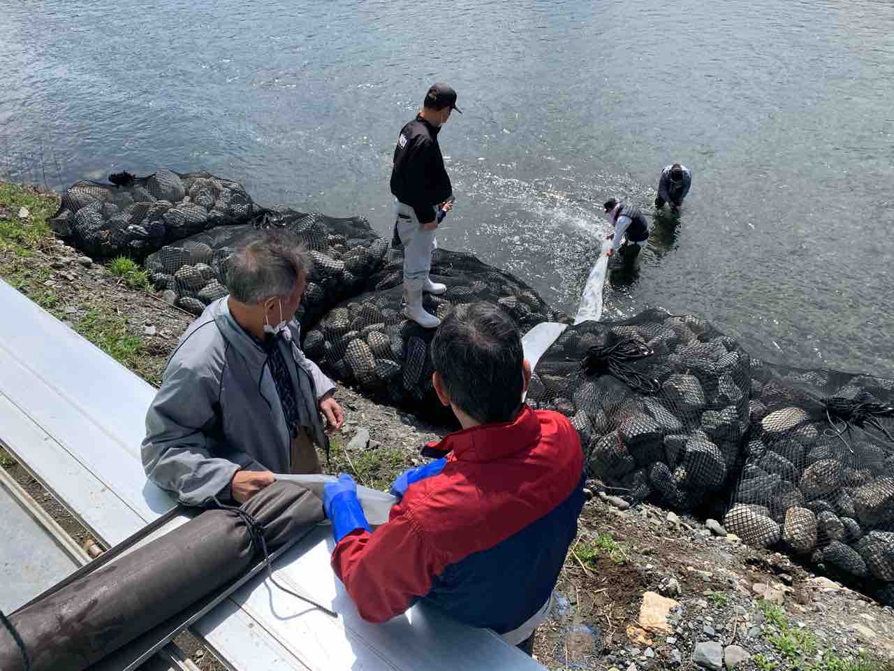 “マキノ海津の追いさで漁の種鮎を放流するから手伝ってくれ”