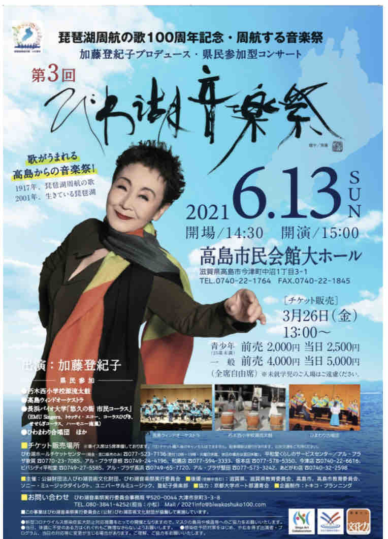 6月13日(日)高島市民会館にて加藤登紀子さんが来られ、なんと私が所属する吹奏楽団に演奏依頼を頂き協演する事になりました。