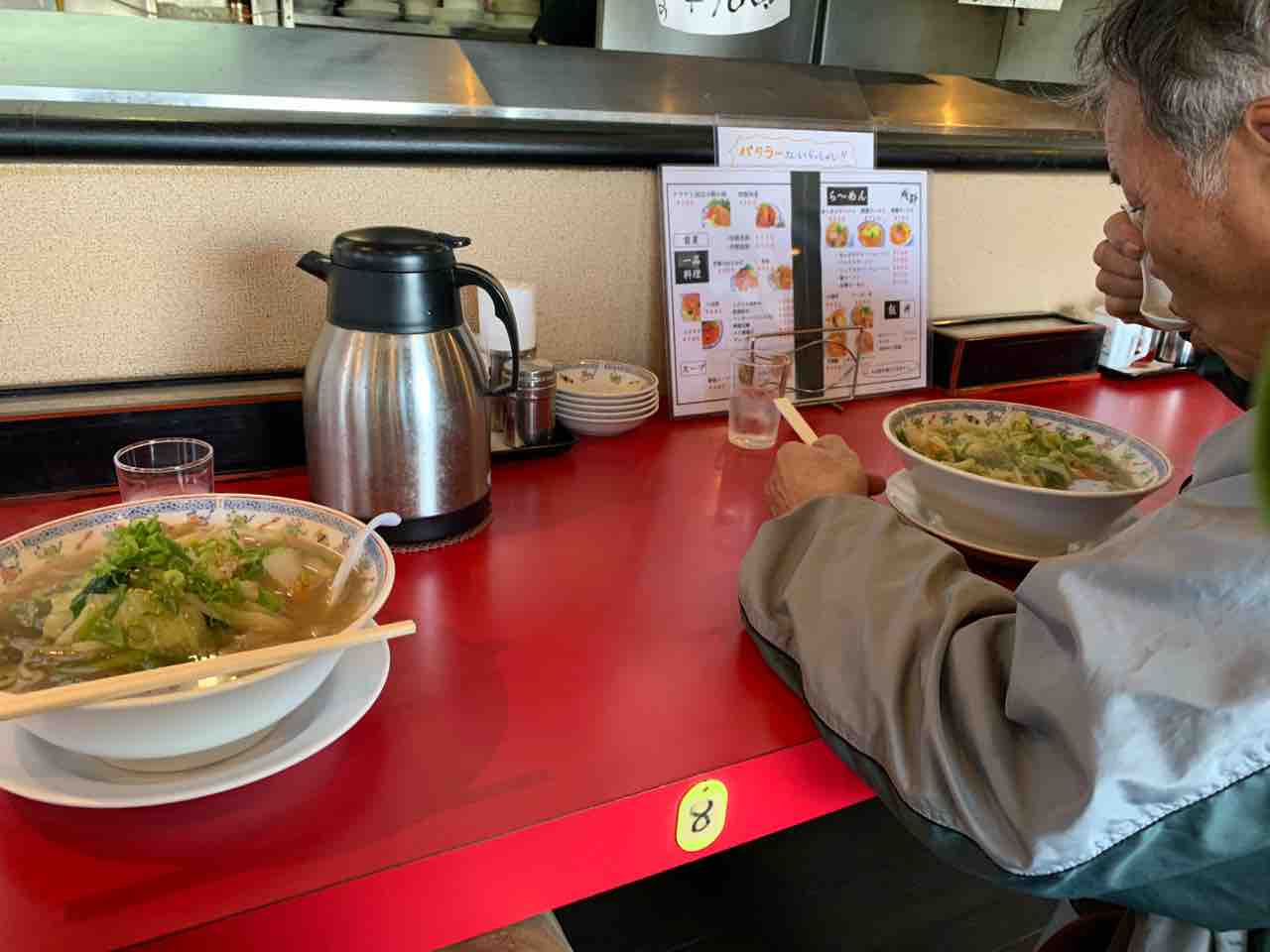 行く途中に組合長行きつけのラーメン屋でランチをオゴってもらい