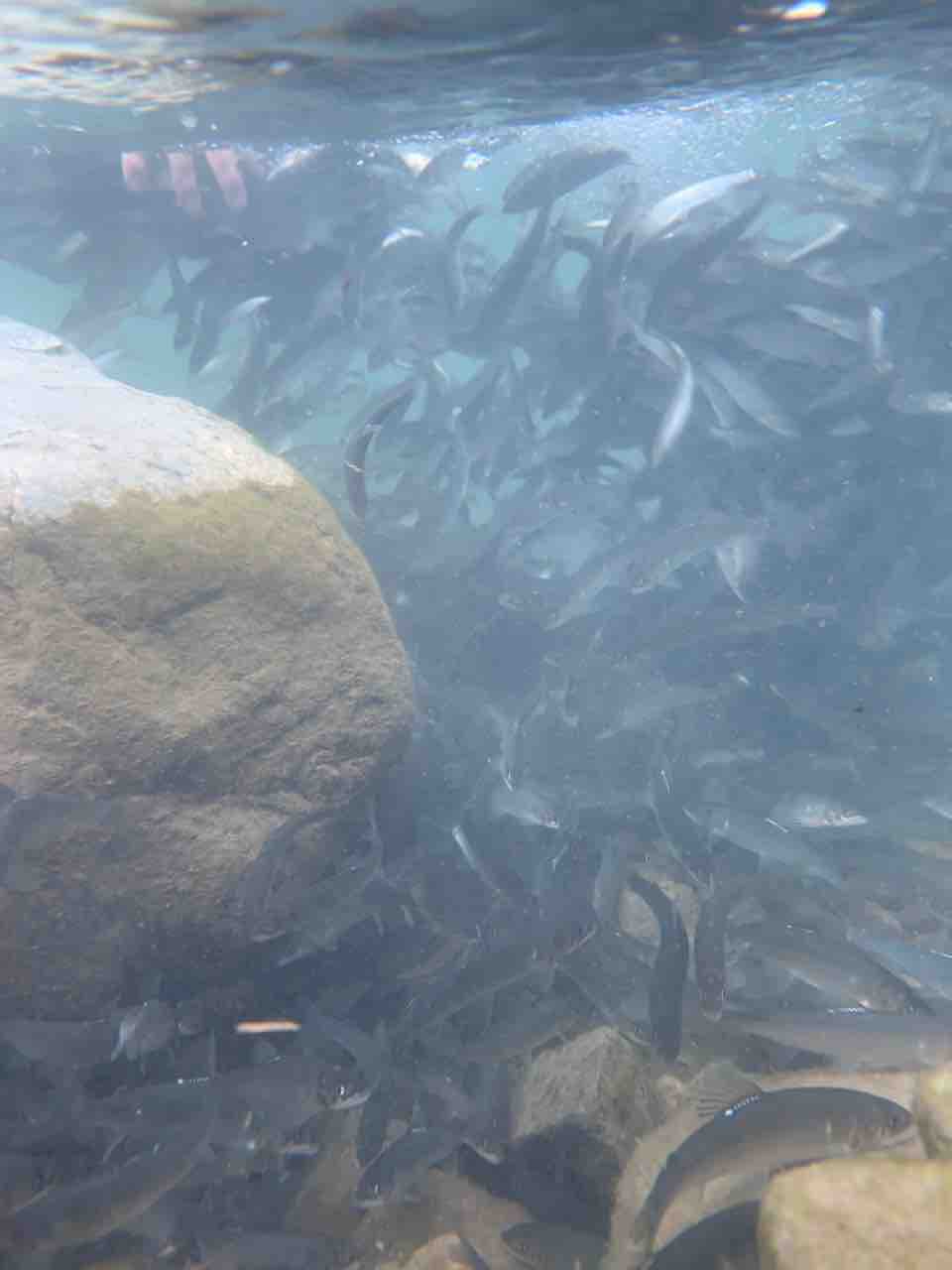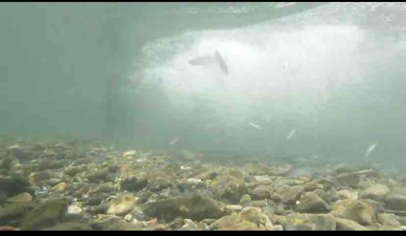 ちょうど一週間前に放流した種鮎は当店前にも来たはず、通り過ぎて大野堰堤ぐらいまで行ってるかな?