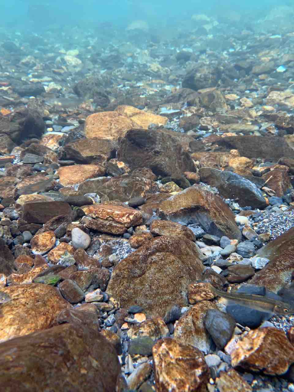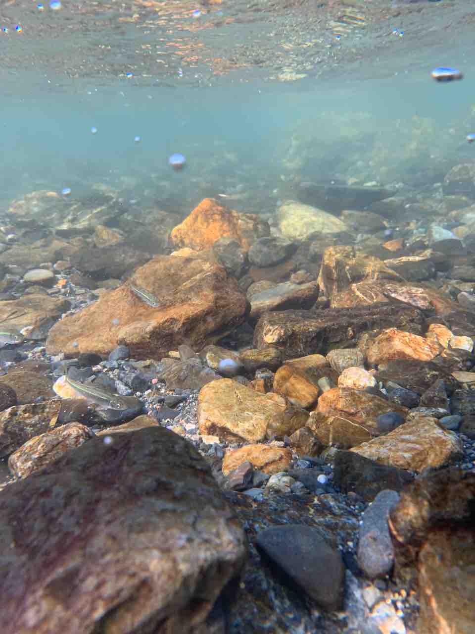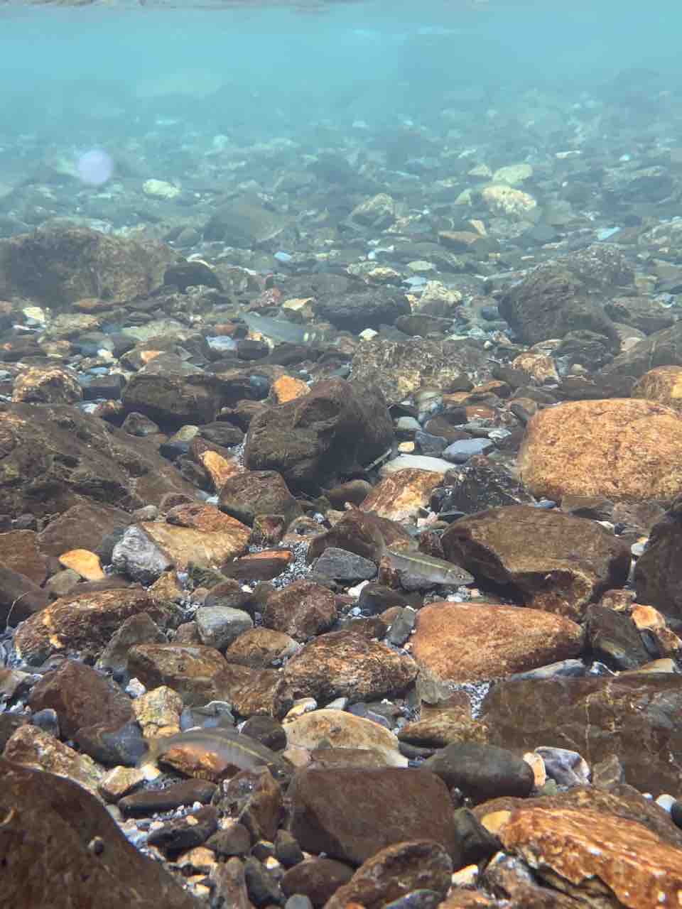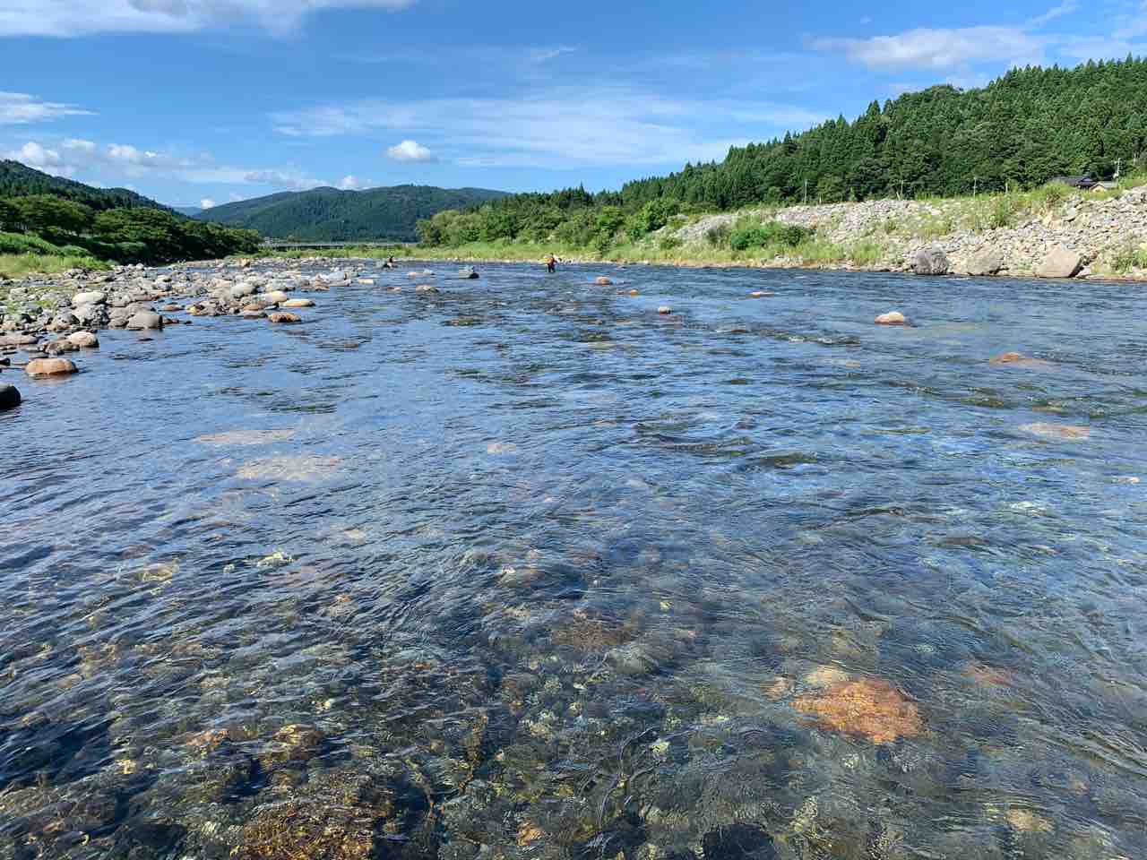今日は残念ながら至近距離まで野鮎は近付いて来てくれなかったです。暇な方は目を凝らして魚の数を数えてみて下さい。