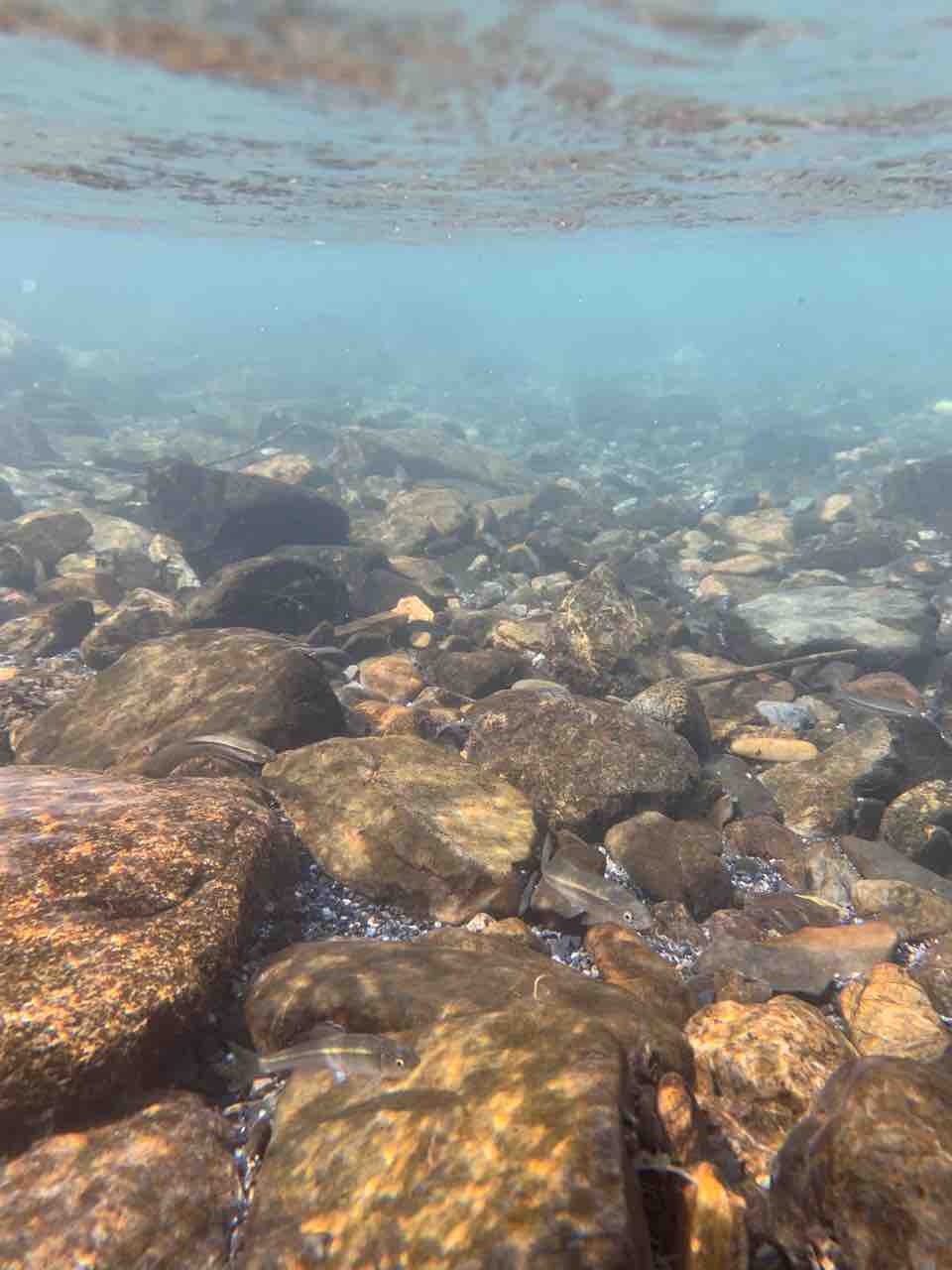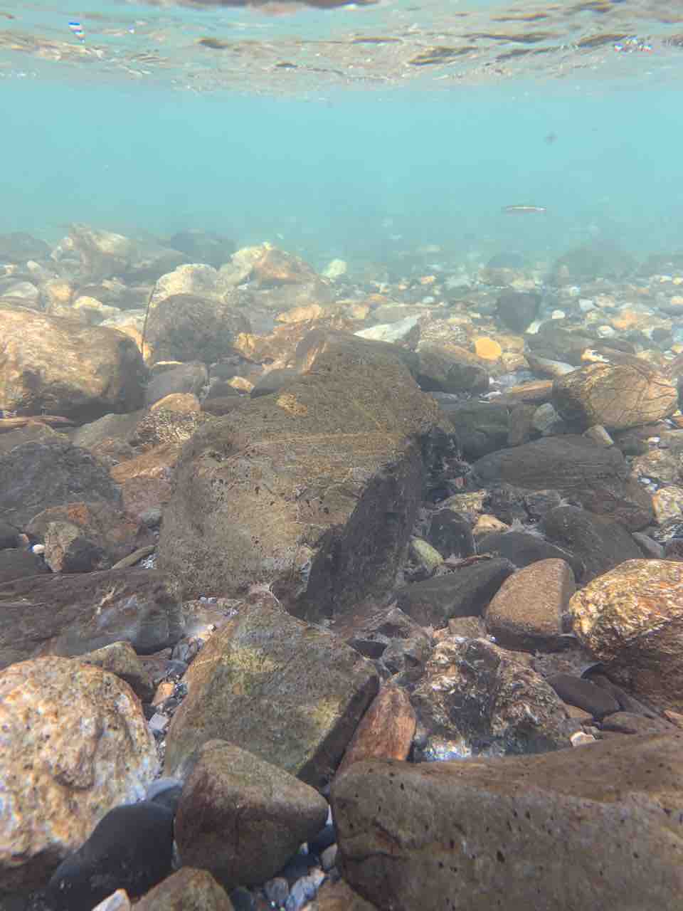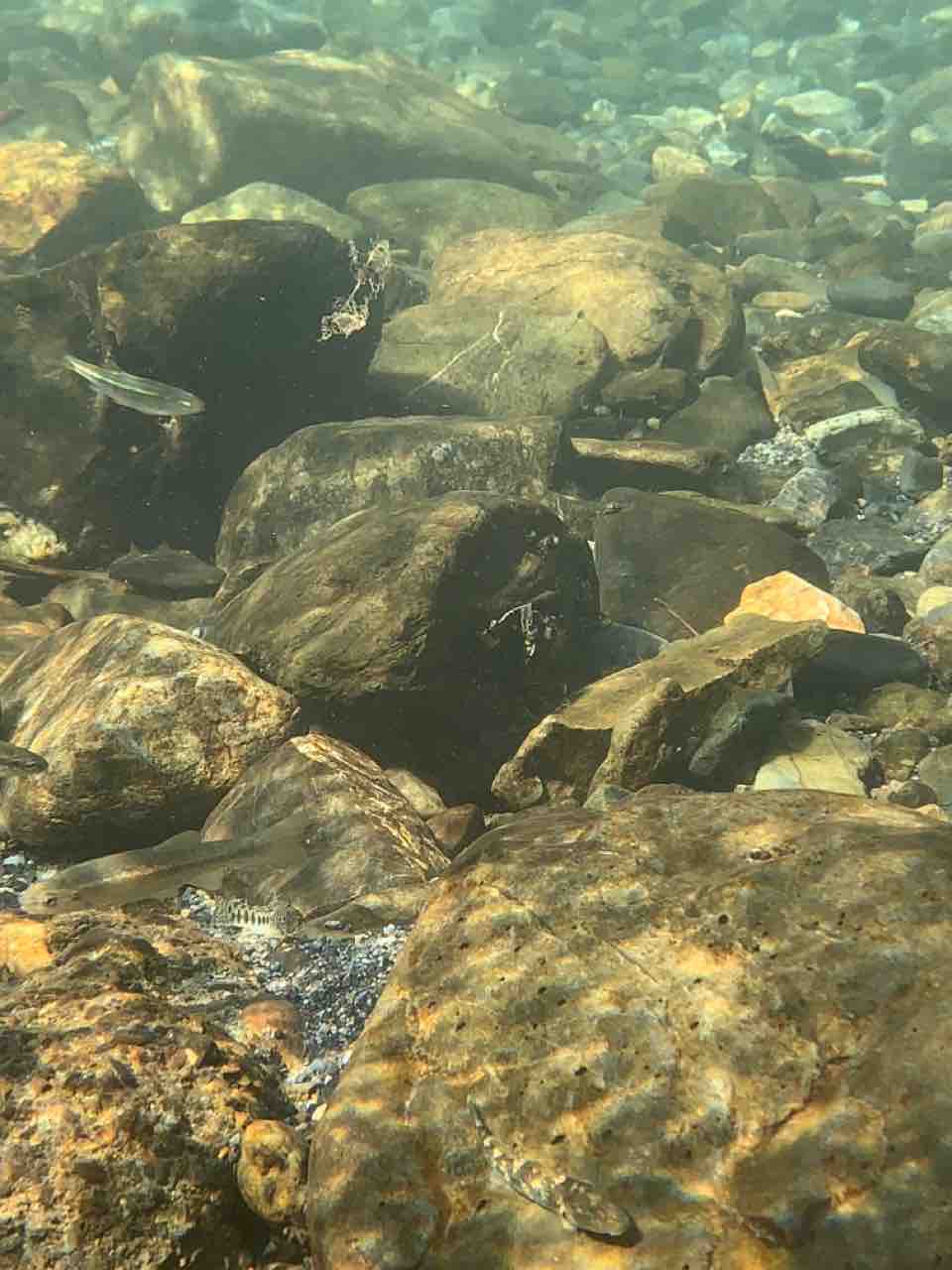 今日は残念ながら至近距離まで野鮎は近付いて来てくれなかったです。暇な方は目を凝らして魚の数を数えてみて下さい。