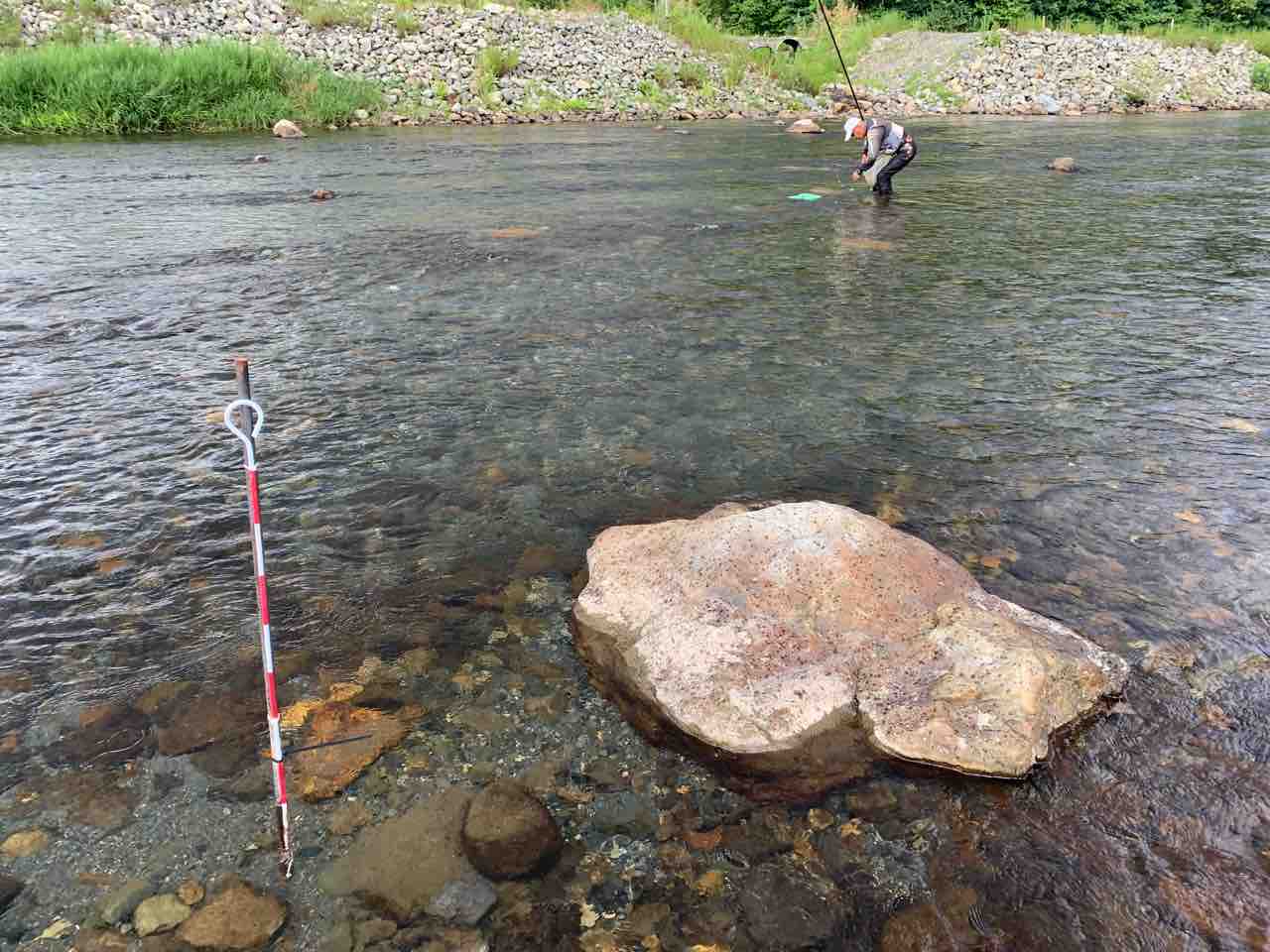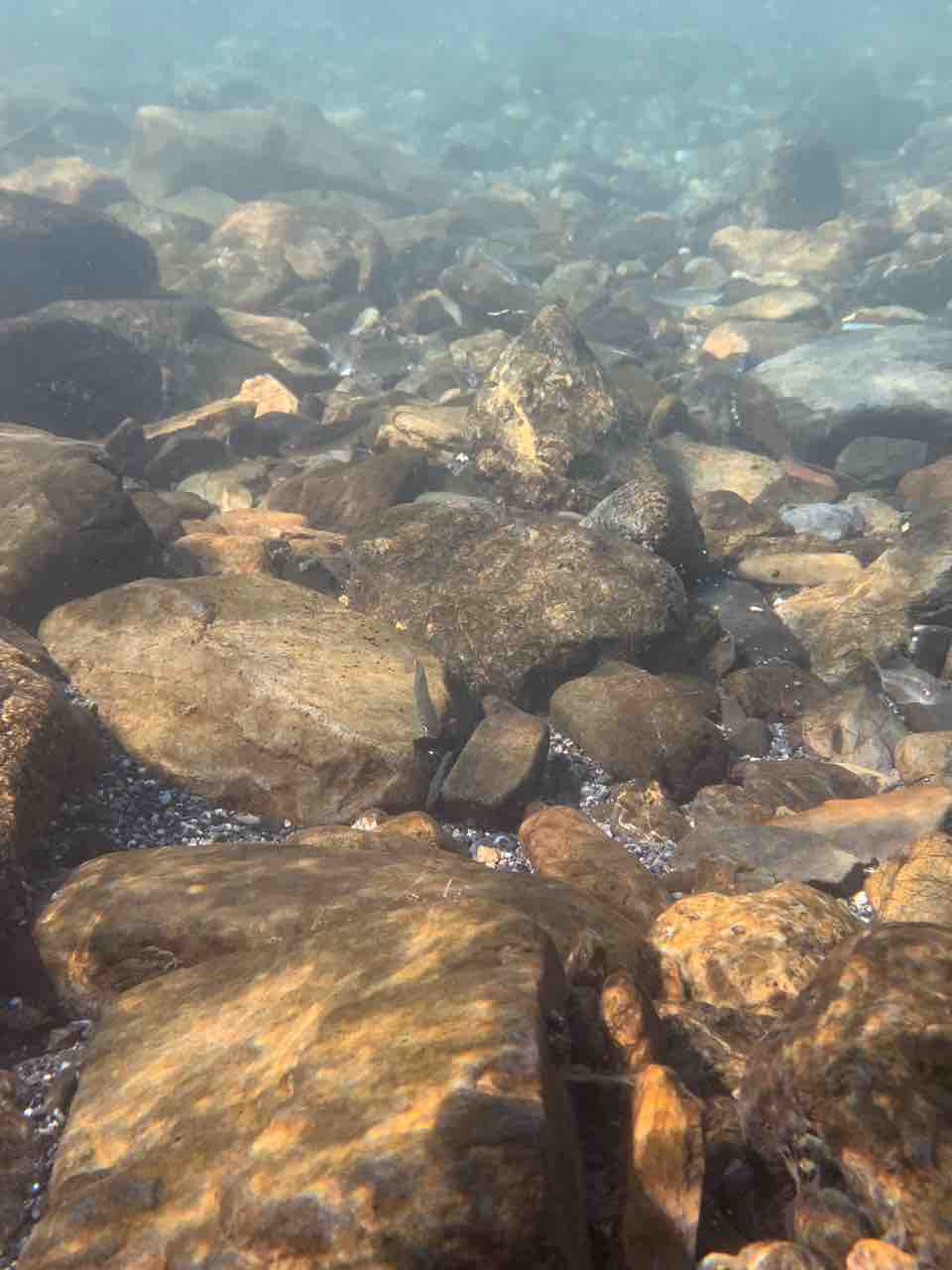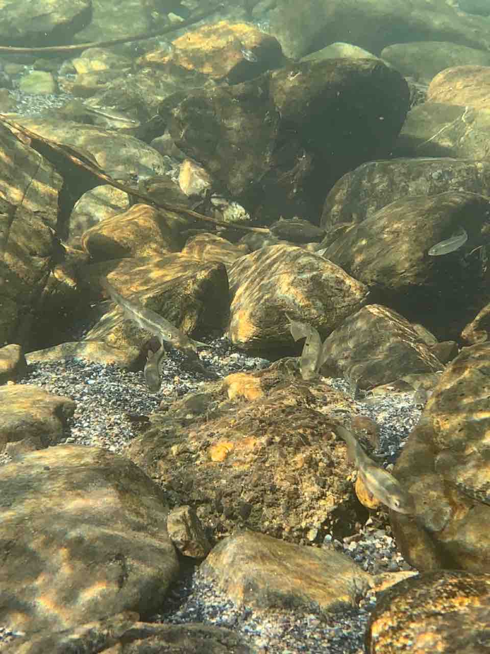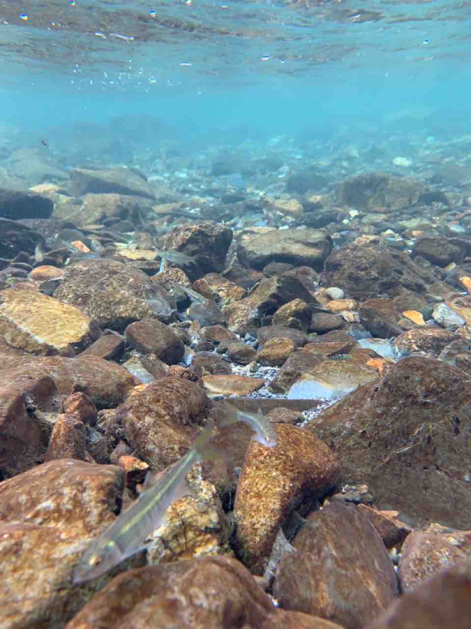 今日は残念ながら至近距離まで野鮎は近付いて来てくれなかったです。暇な方は目を凝らして魚の数を数えてみて下さい。