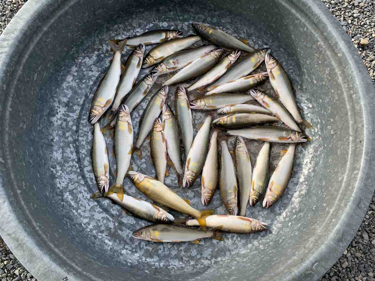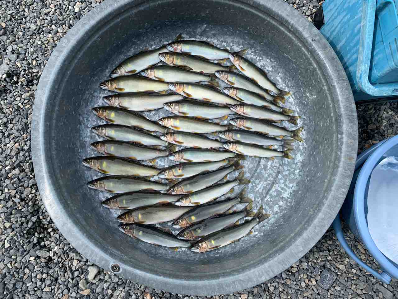 茨木市の井本様は三ツ石上流にて15.5〜20.5cmを38尾