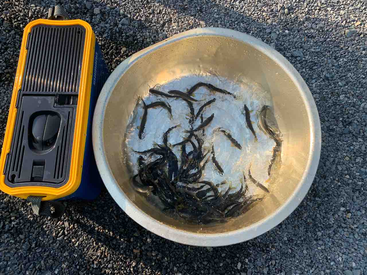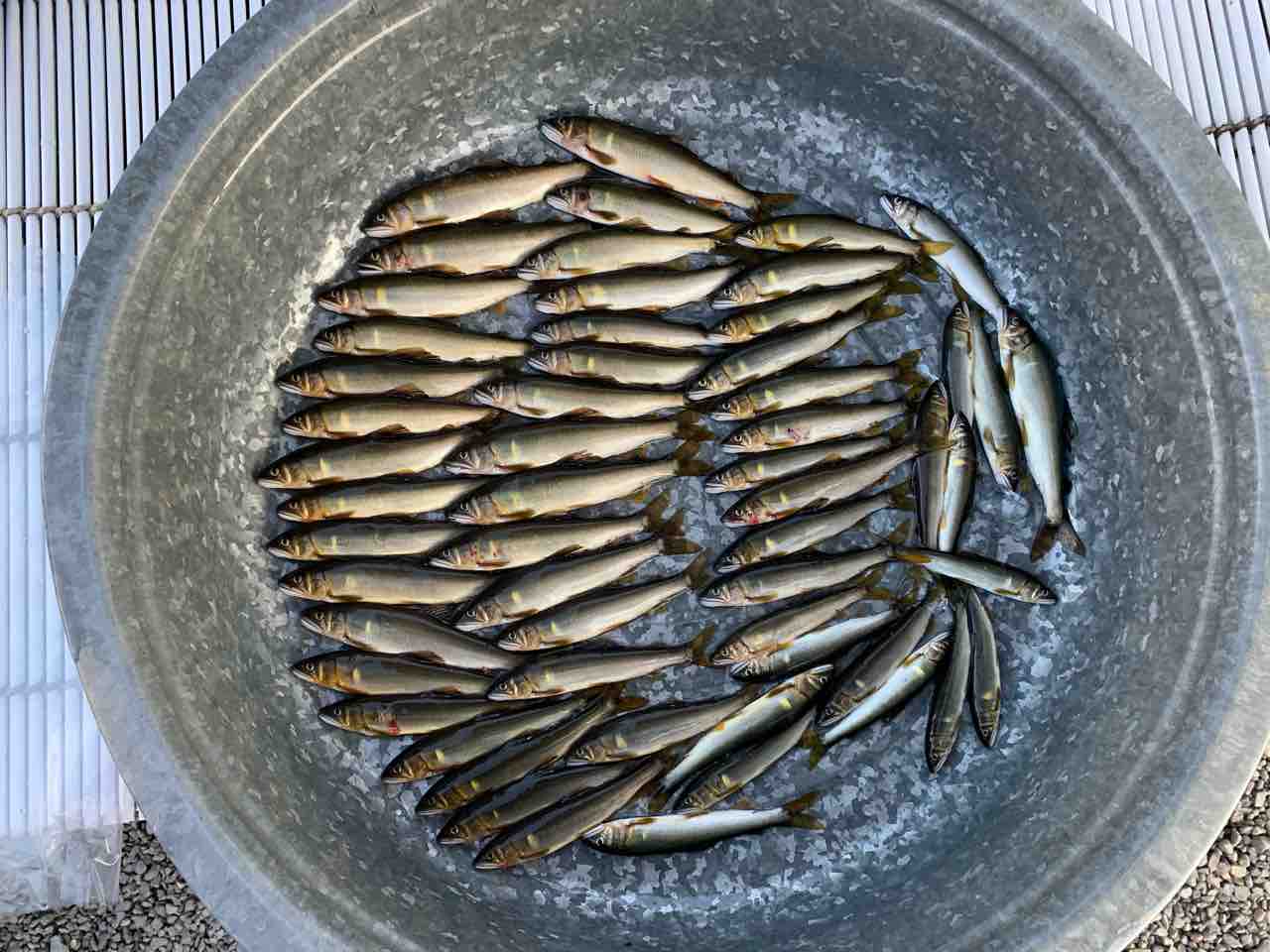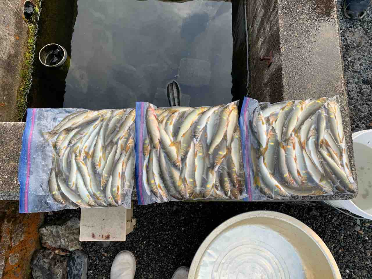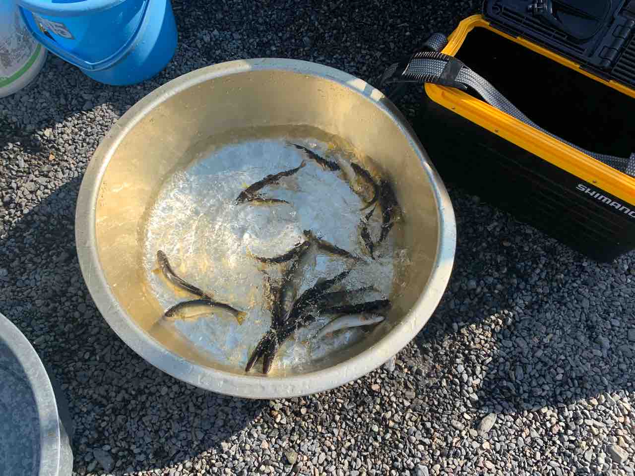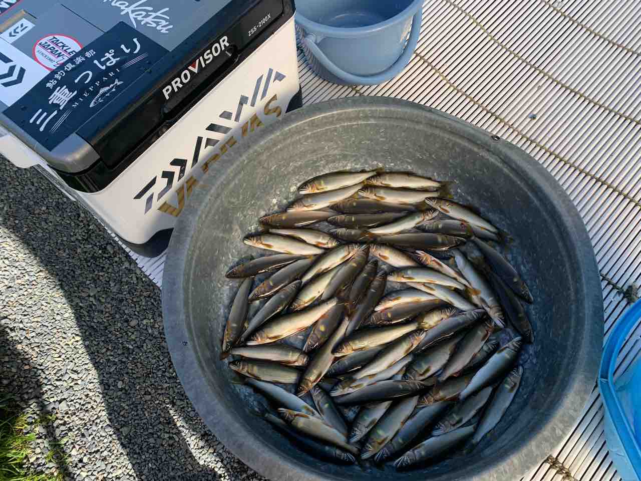 尼崎市の梅津御一行様は午前に北川向所と午後当店前にて70尾ぐらい
