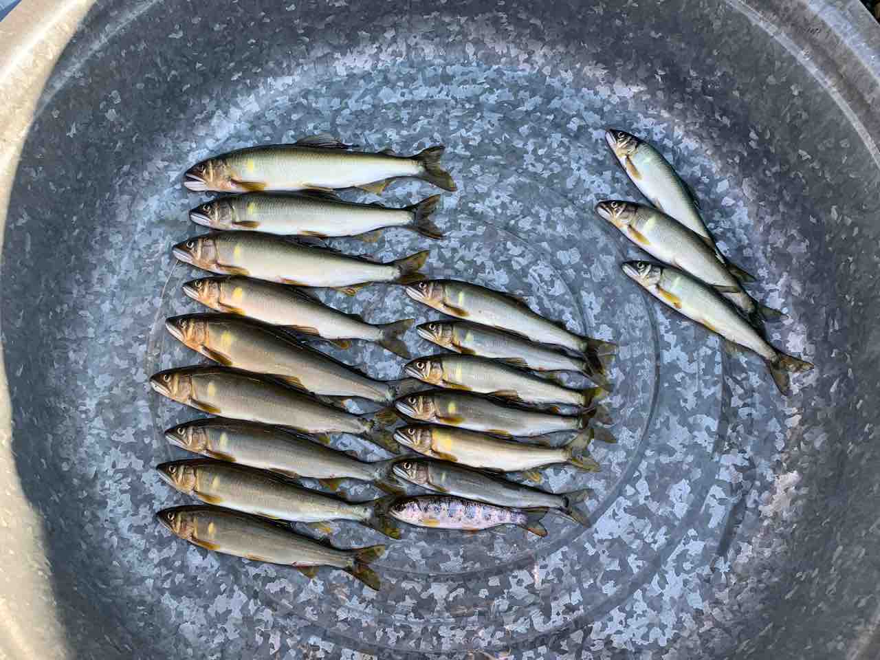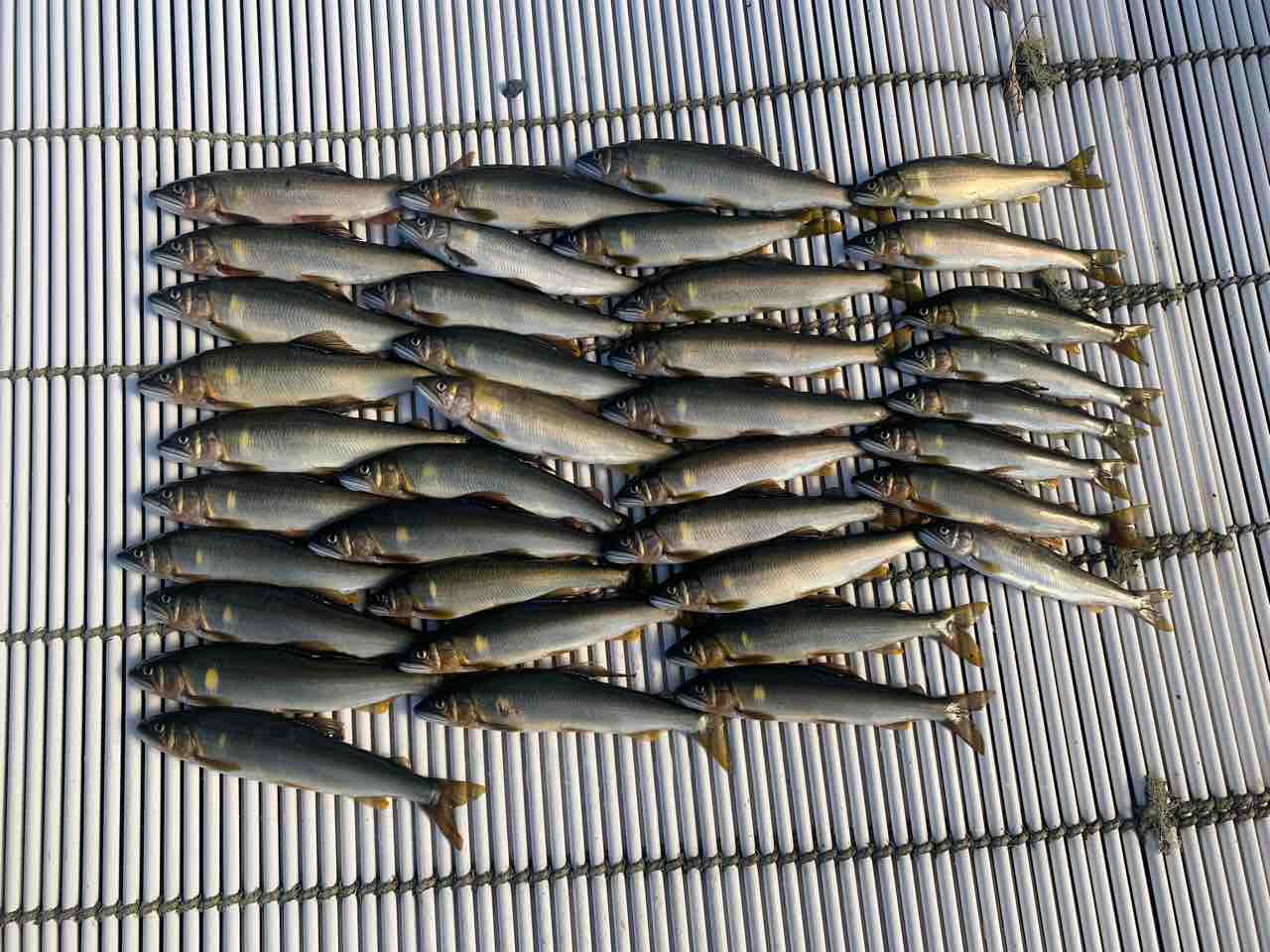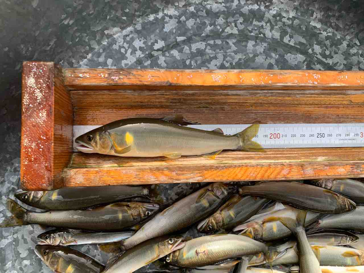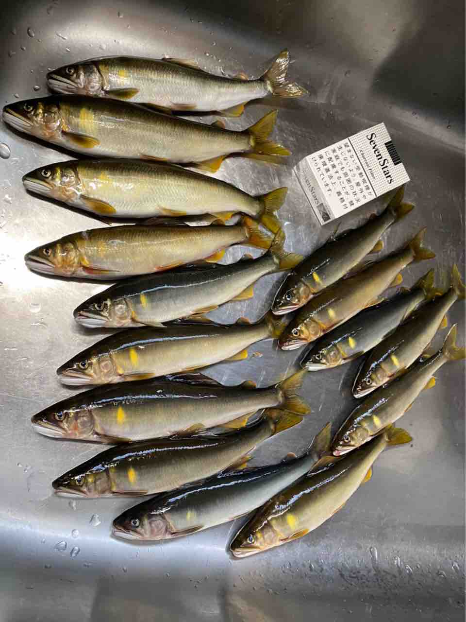 7尾のビリ鮎以外は16〜17cmで揃っています。