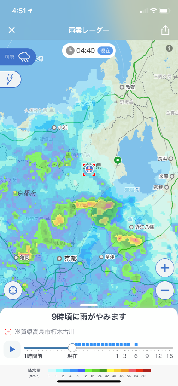 午後3時ごろ通り雨がありましたが、水位変わらず