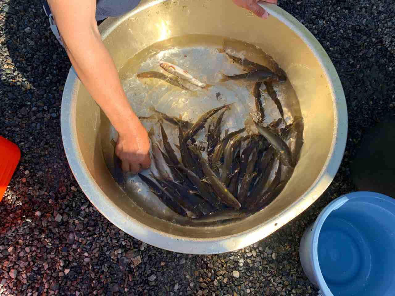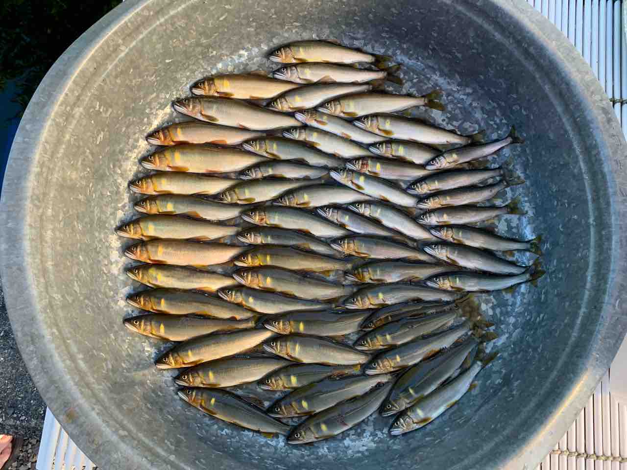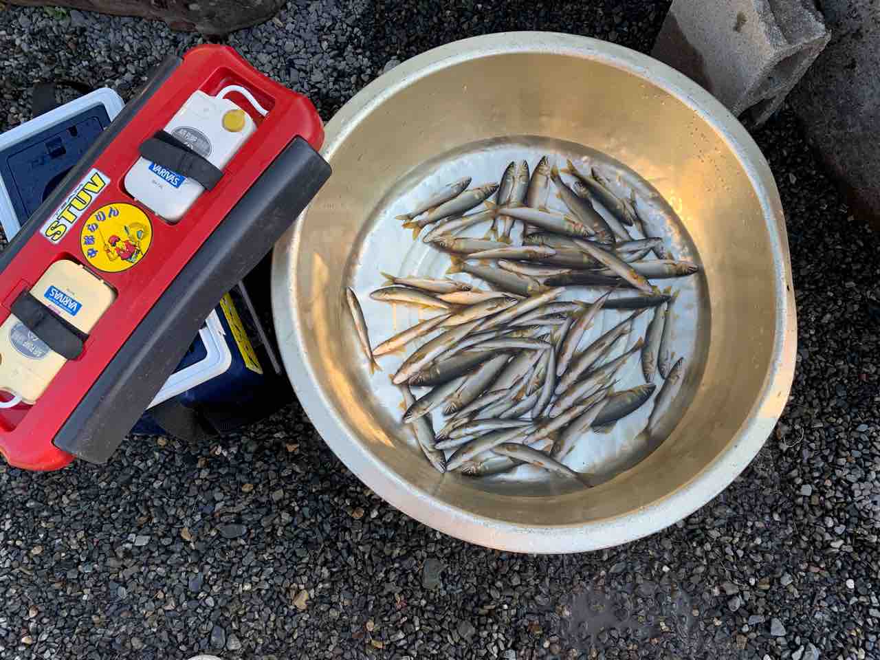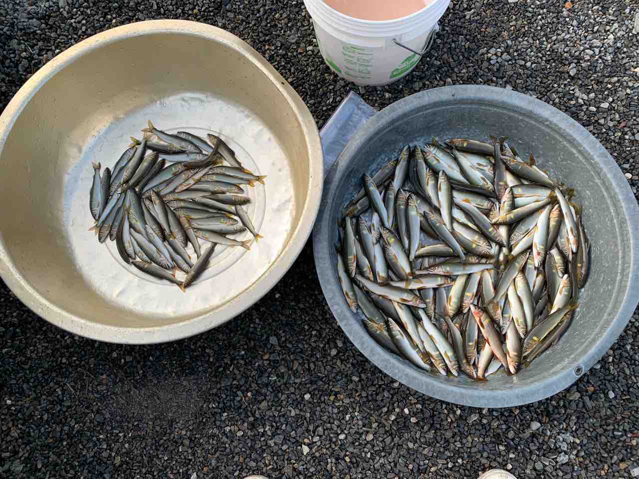 ↓大角様の2日分の釣果165尾を塩焼きサイズと天ぷらサイズに分けてみました。