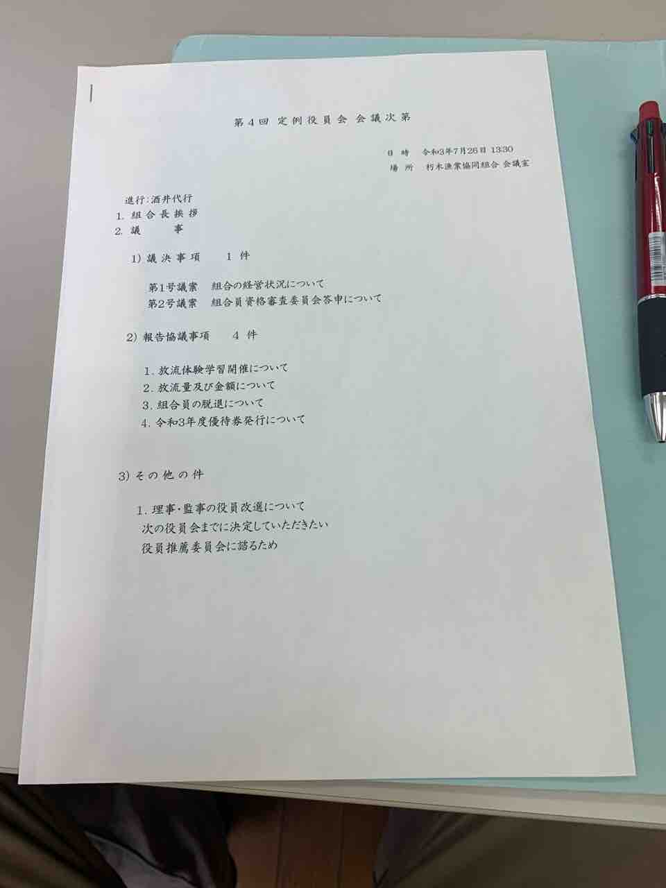 本日午後から朽木漁協役員会の定例議会に出席します。