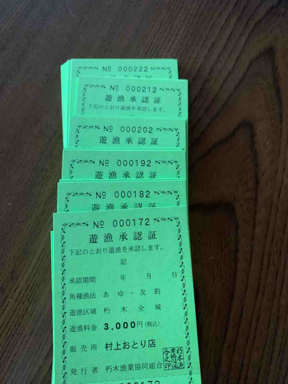 令和3年度村上おとり店販売の鮎の友釣り入川券です。