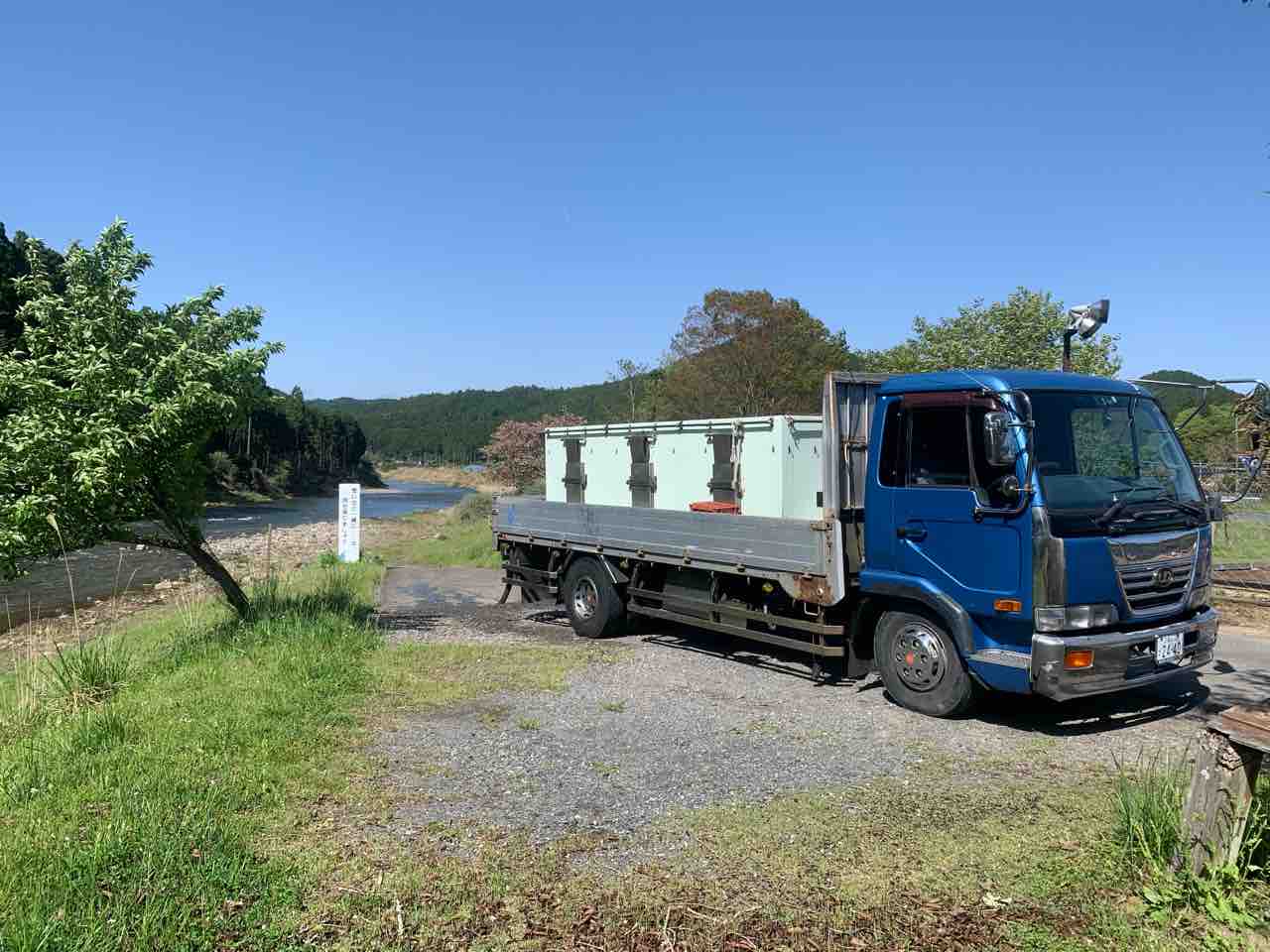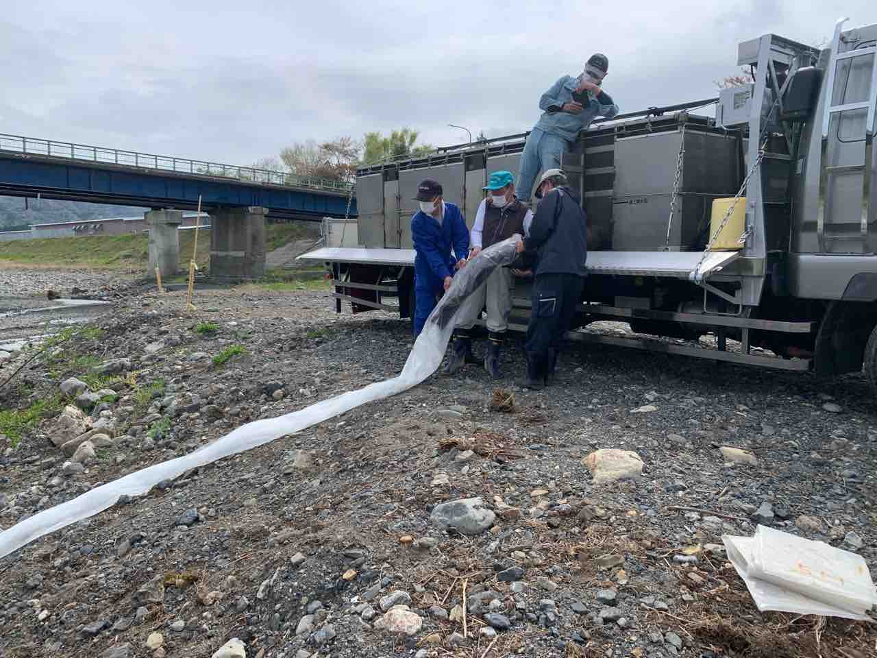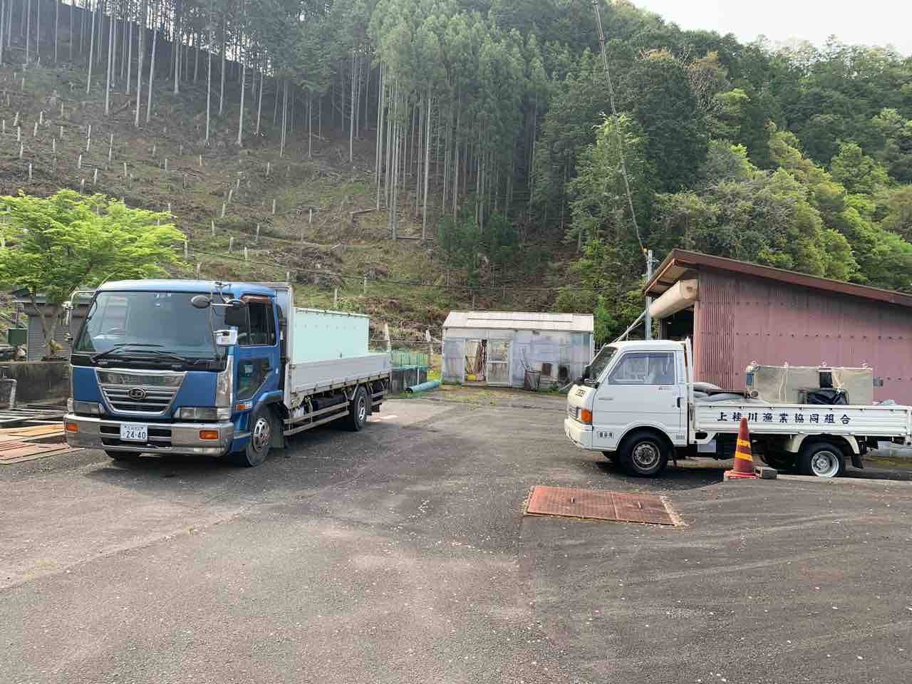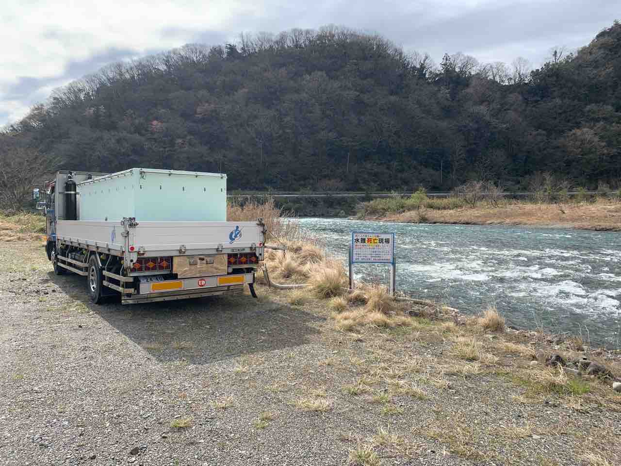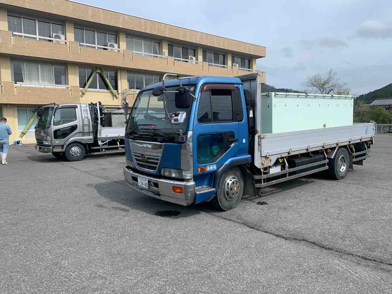 4t車2台、琵琶湖産の養殖の種鮎総量600kg
