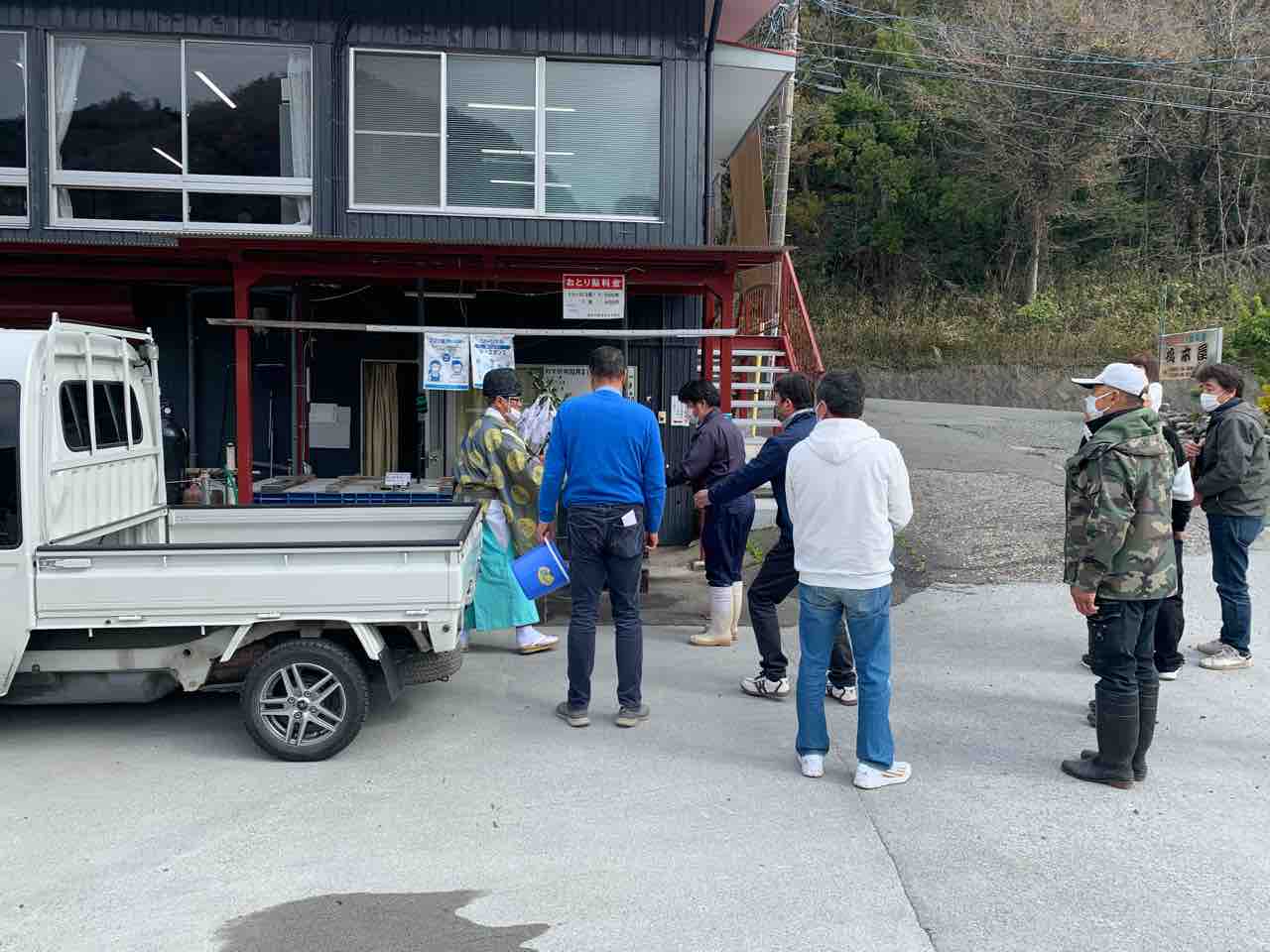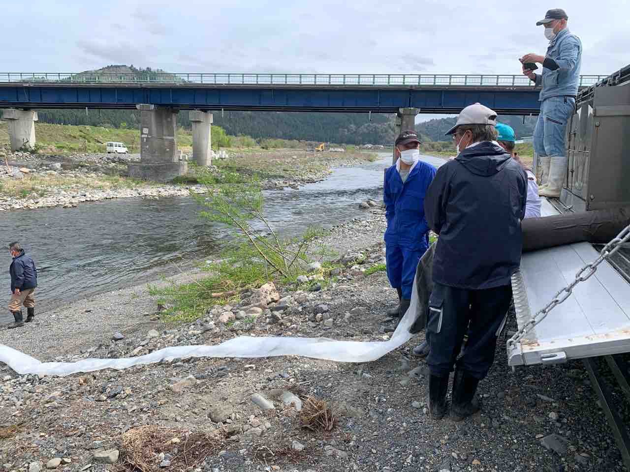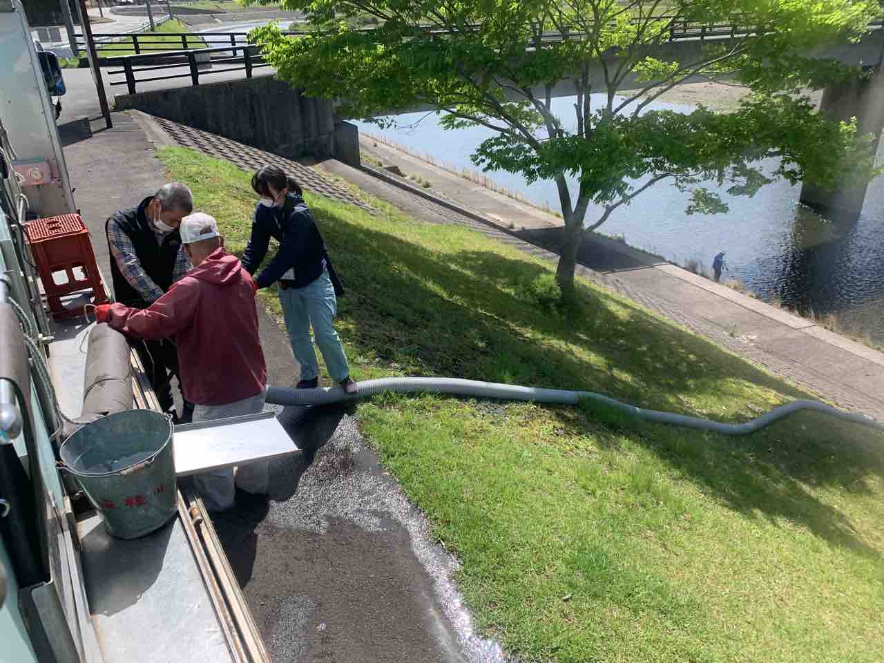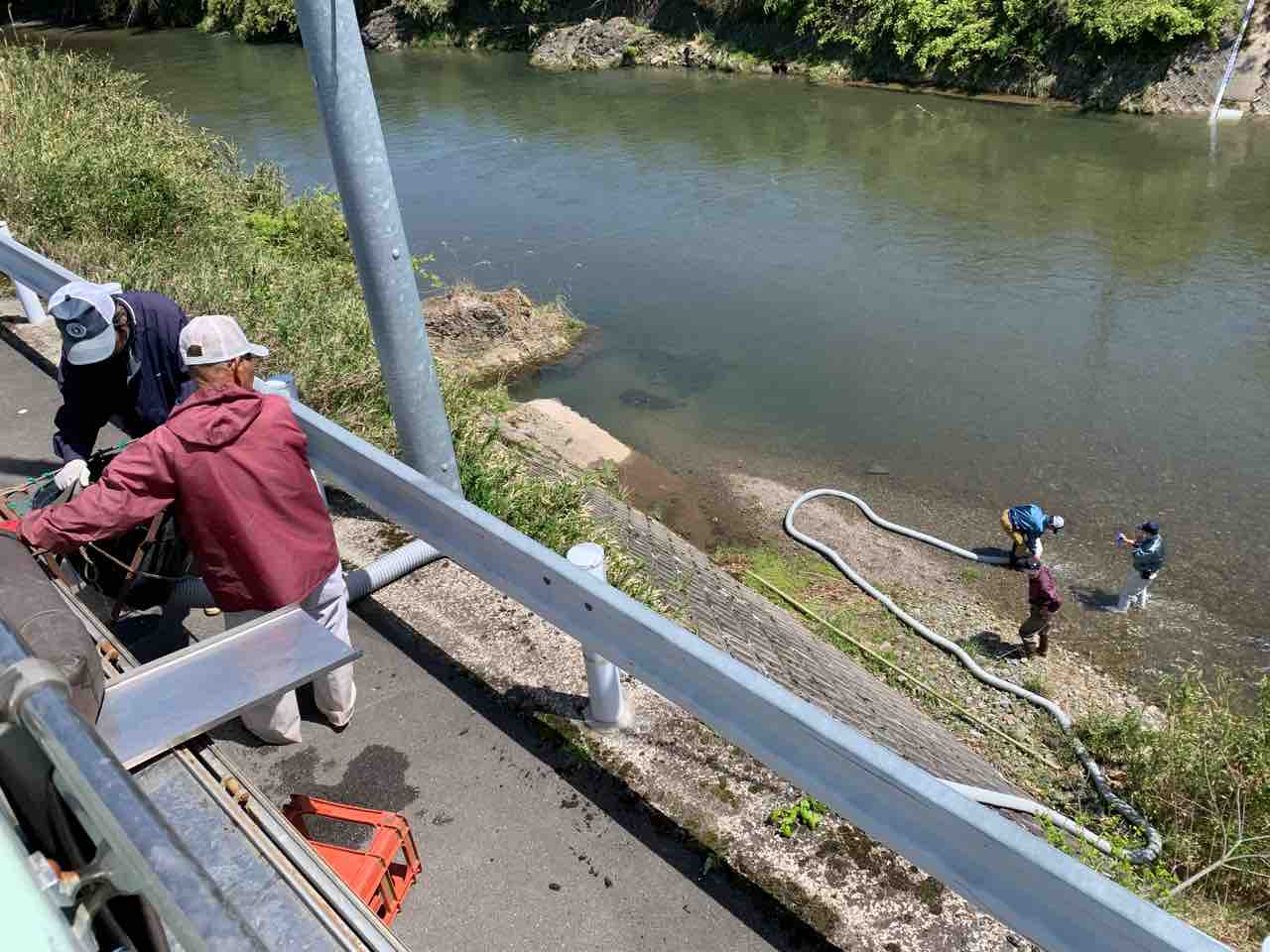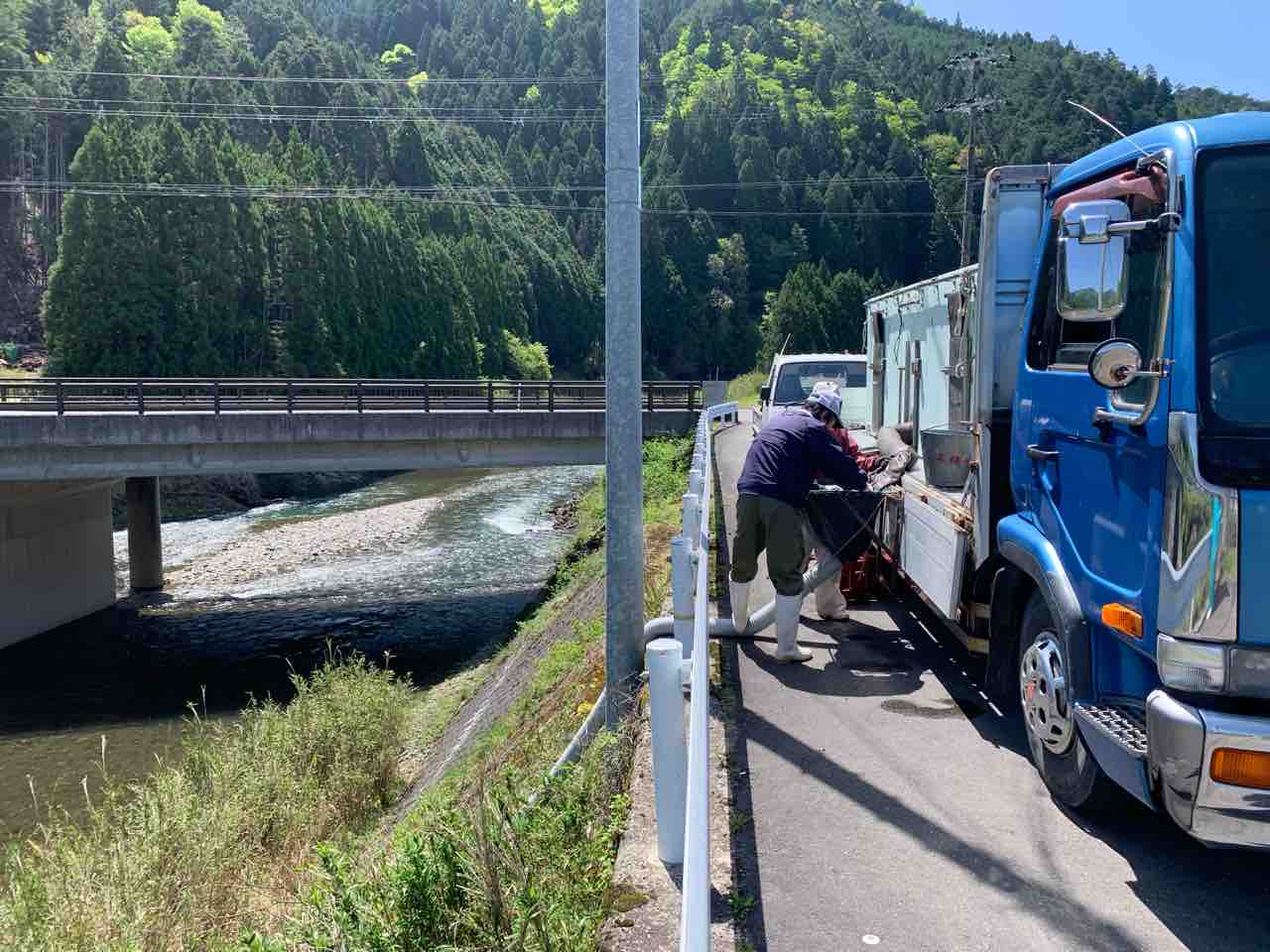4t車2台、琵琶湖産の養殖の種鮎総量600kg