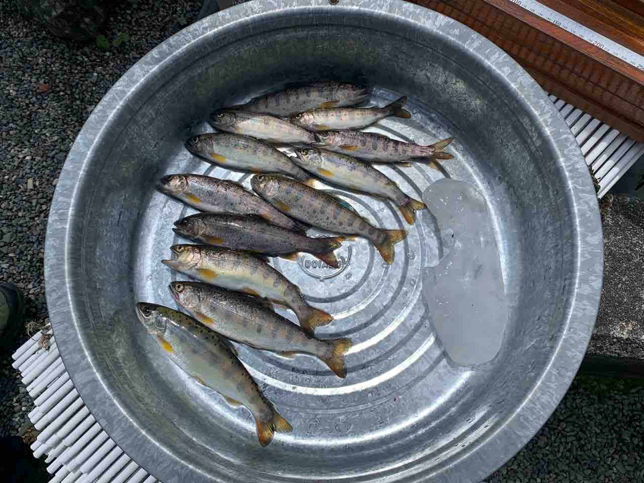 小川辺りから平良までで11時にはやめましたが、型が良いのが13匹釣れました。コンディションがいい魚を4匹リリース。9匹キープしました。