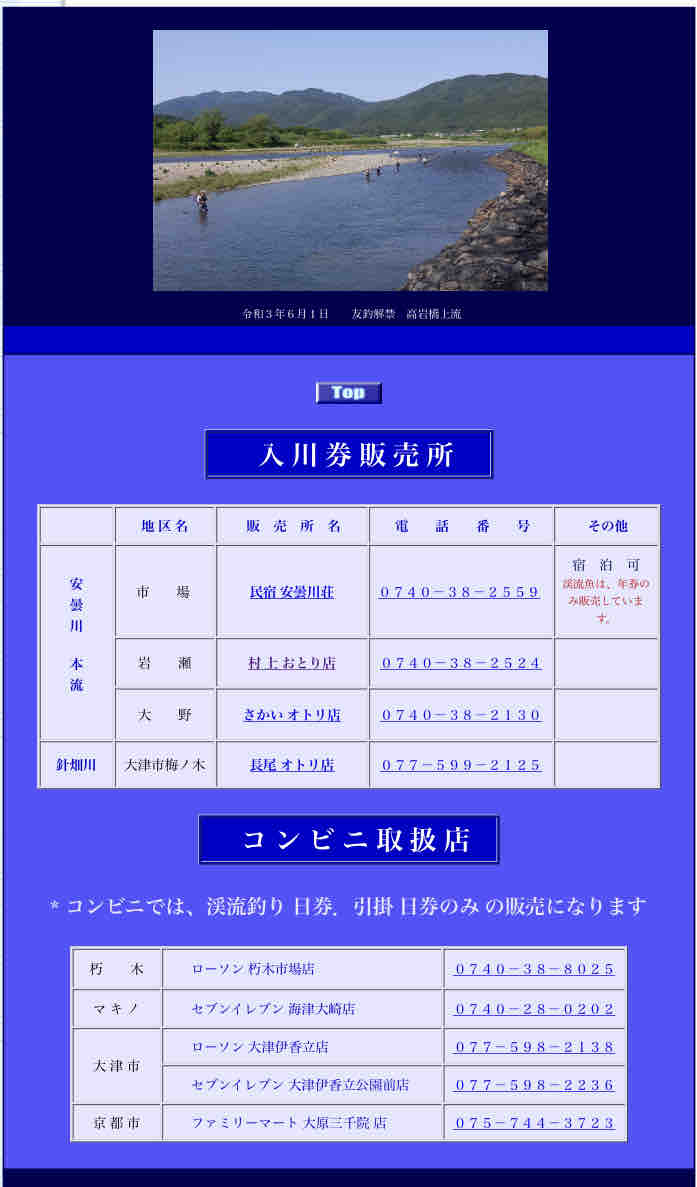 去年鮎釣りに来て下さった岸和田と和歌山の釣具店さんに朽木漁協のパンフレットを置いて貰える様に