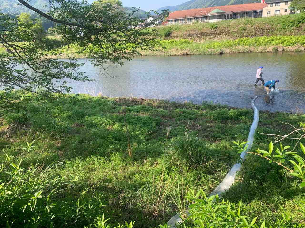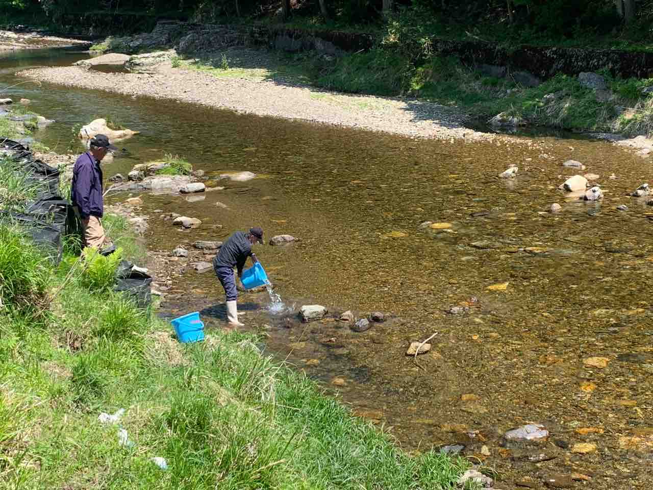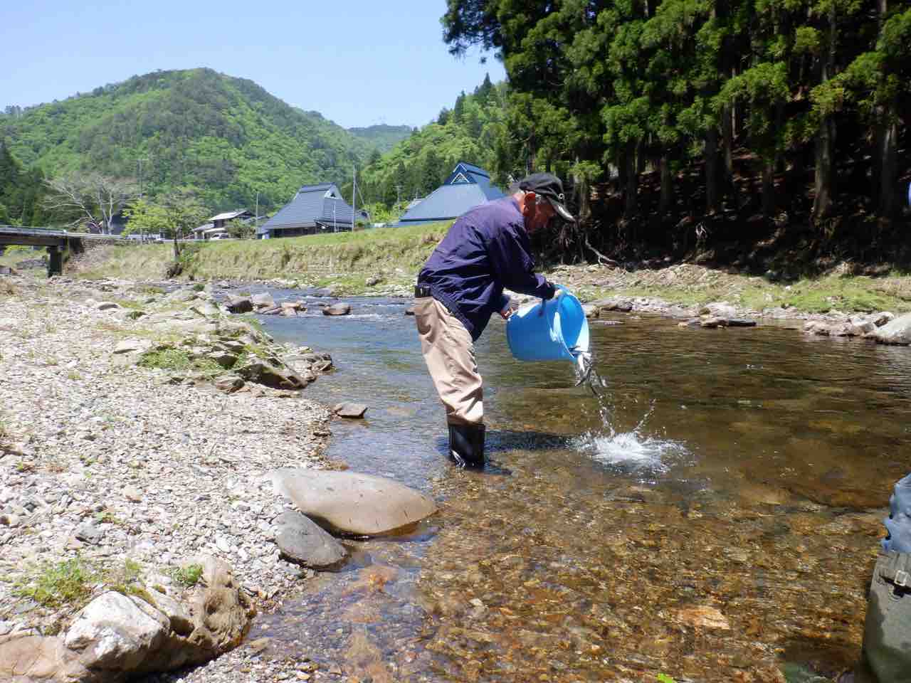 本日北川の山神橋下流にて200kg放流しました。
