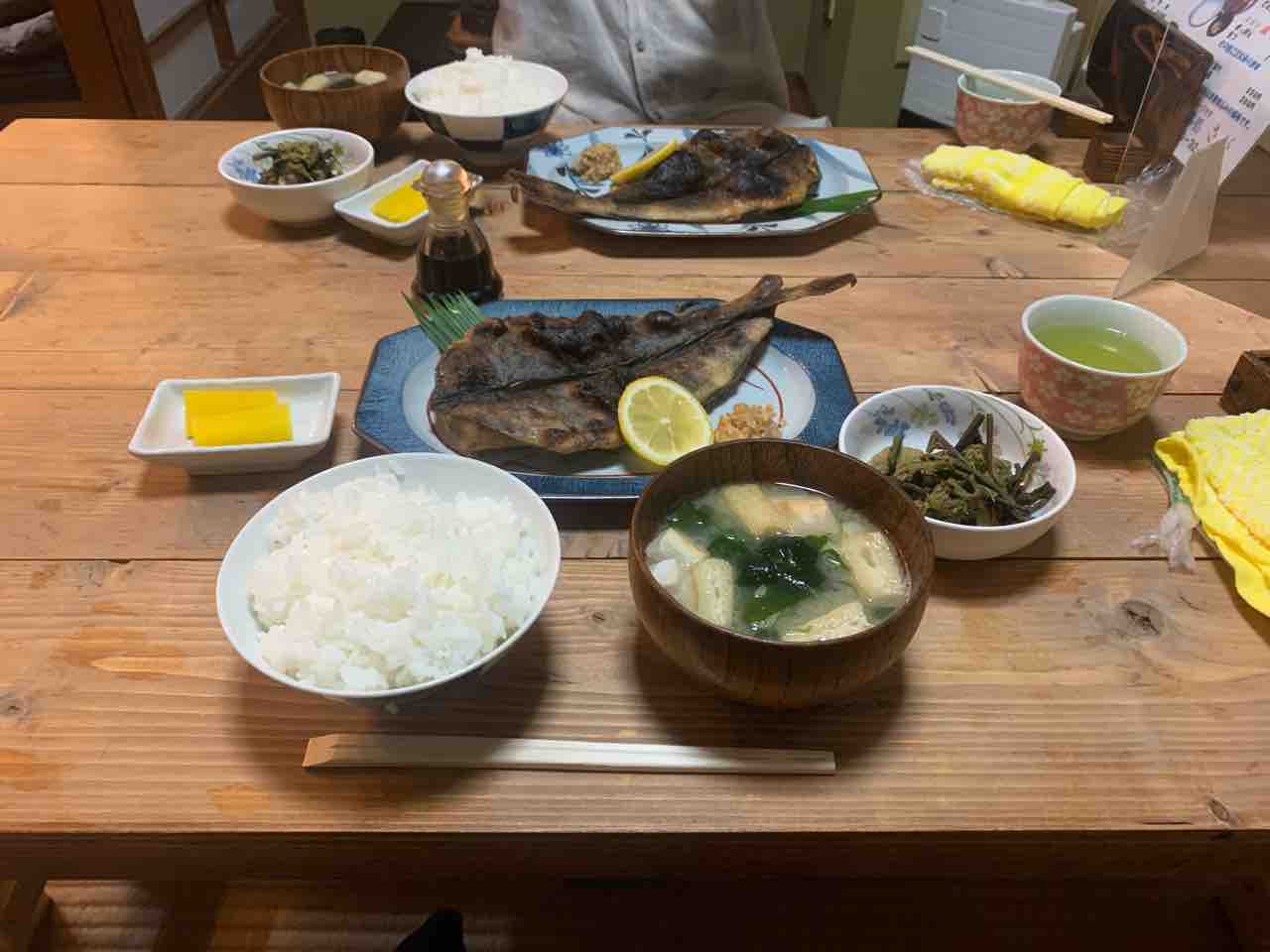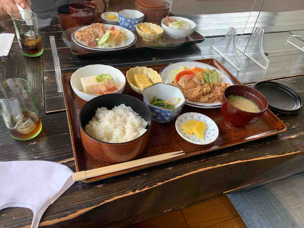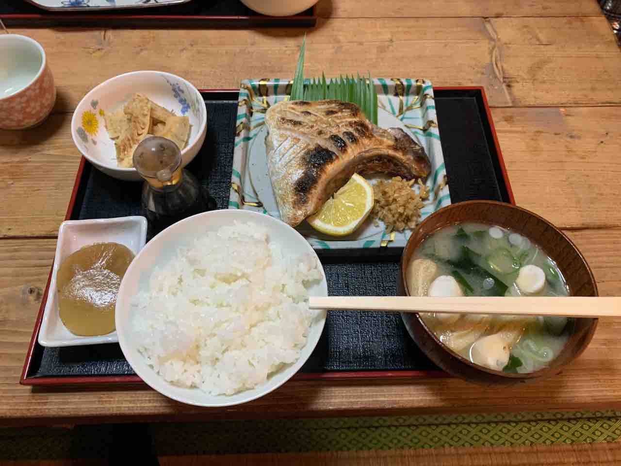 豚汁が来るまで辛抱できず厚揚げを食べてしまいました。そして注文が揃ってから撮影。