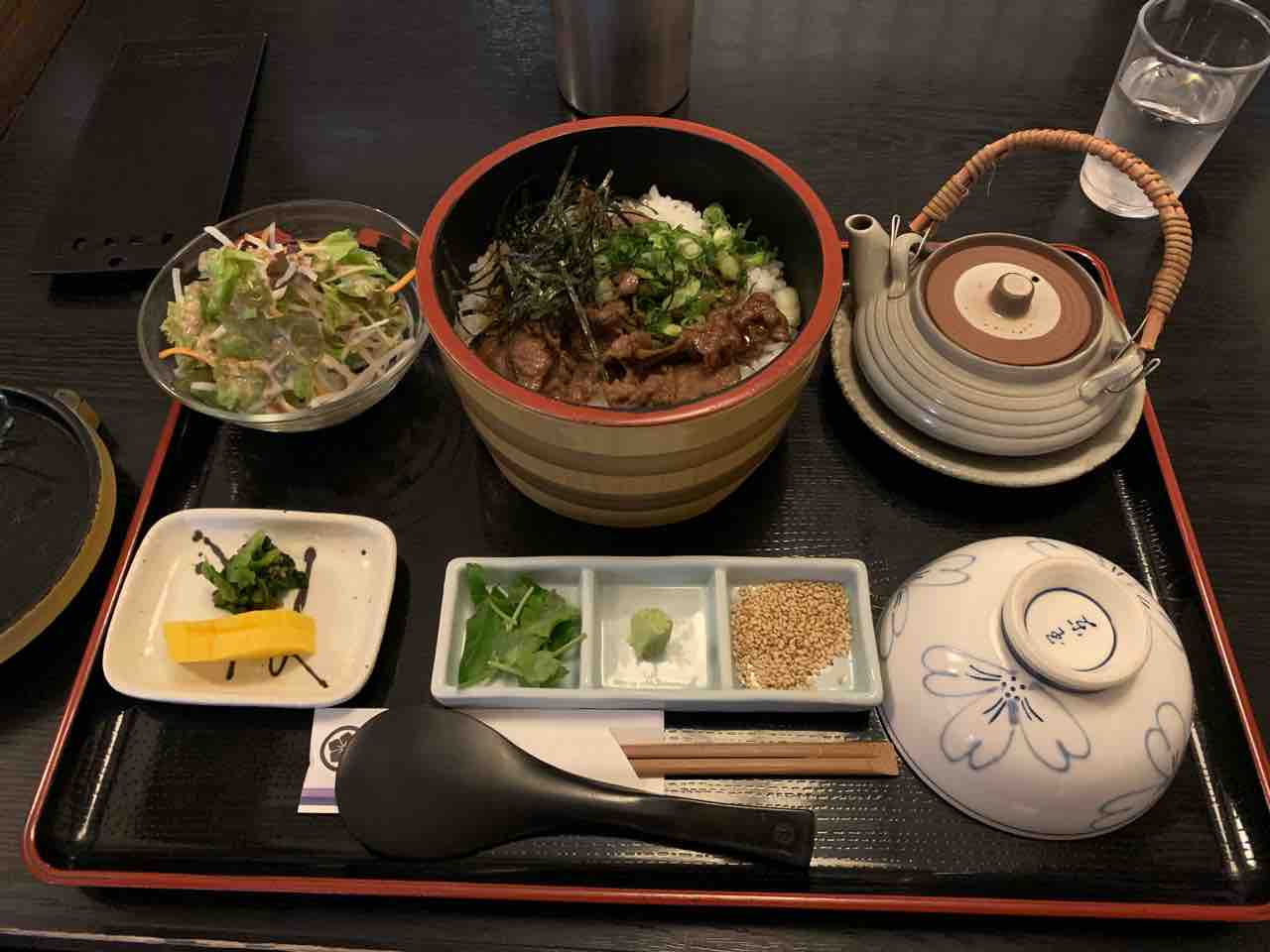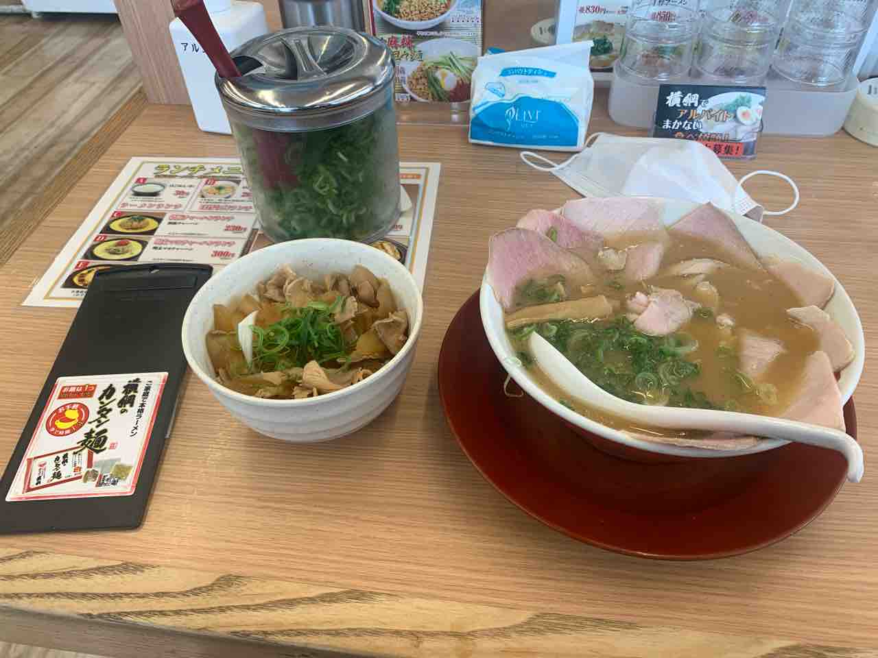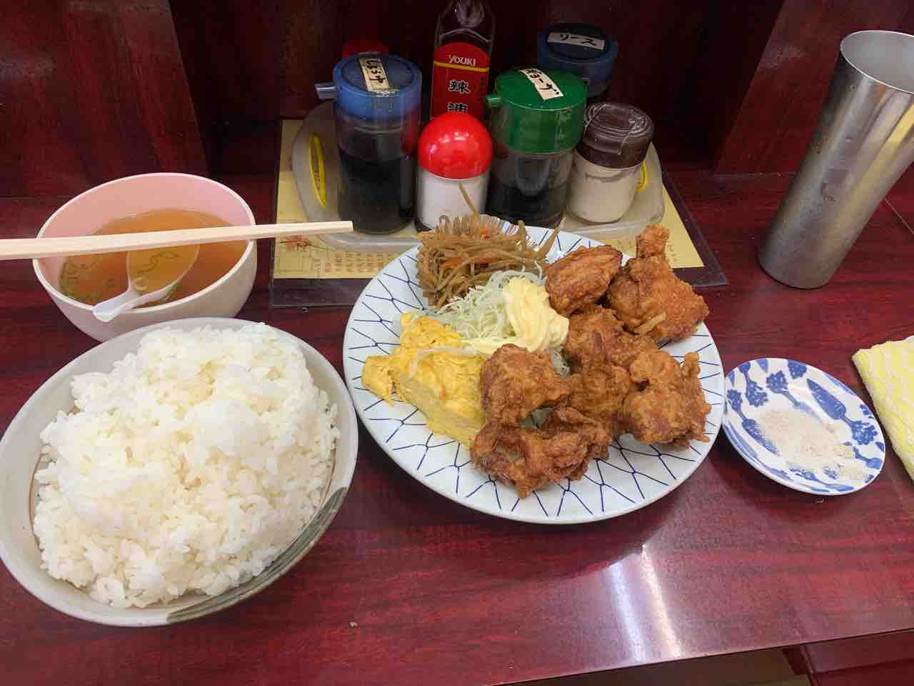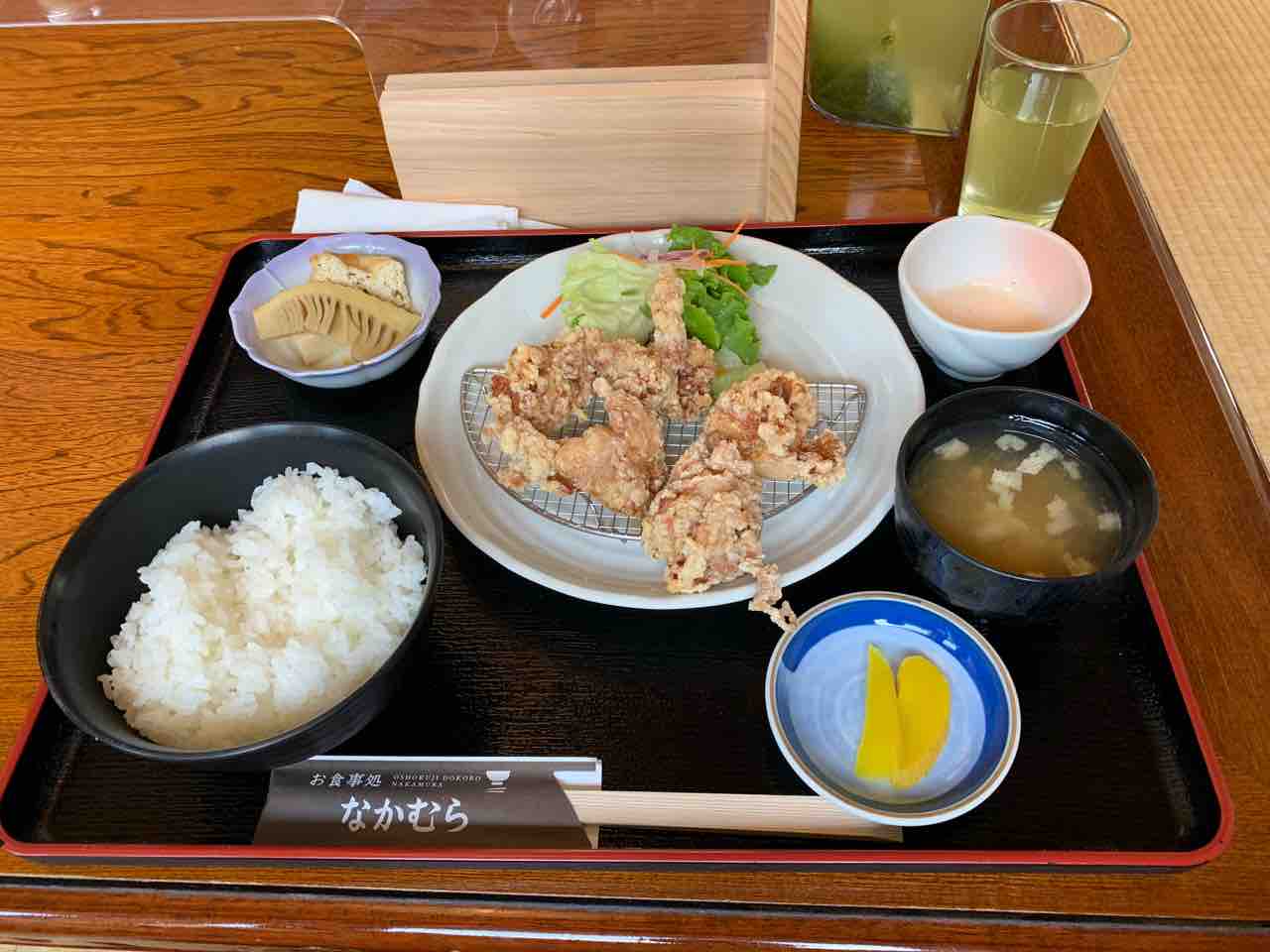 豚汁が来るまで辛抱できず厚揚げを食べてしまいました。そして注文が揃ってから撮影。