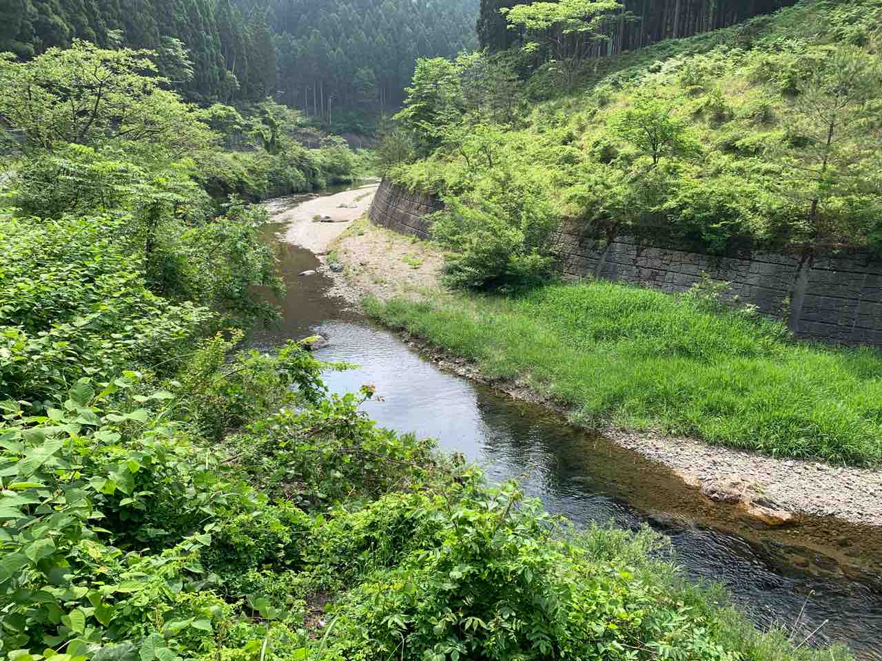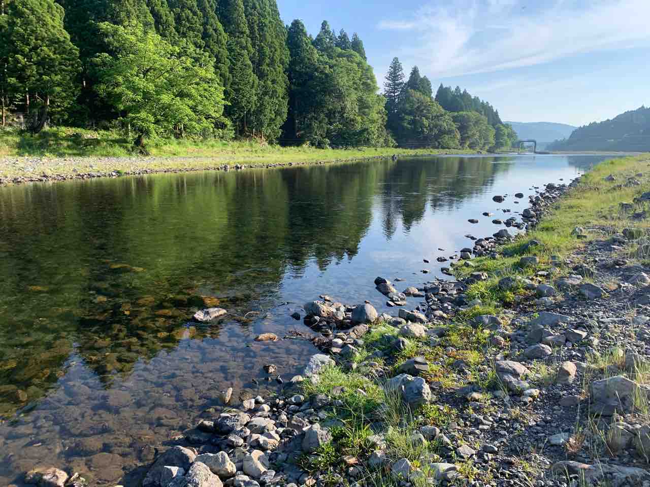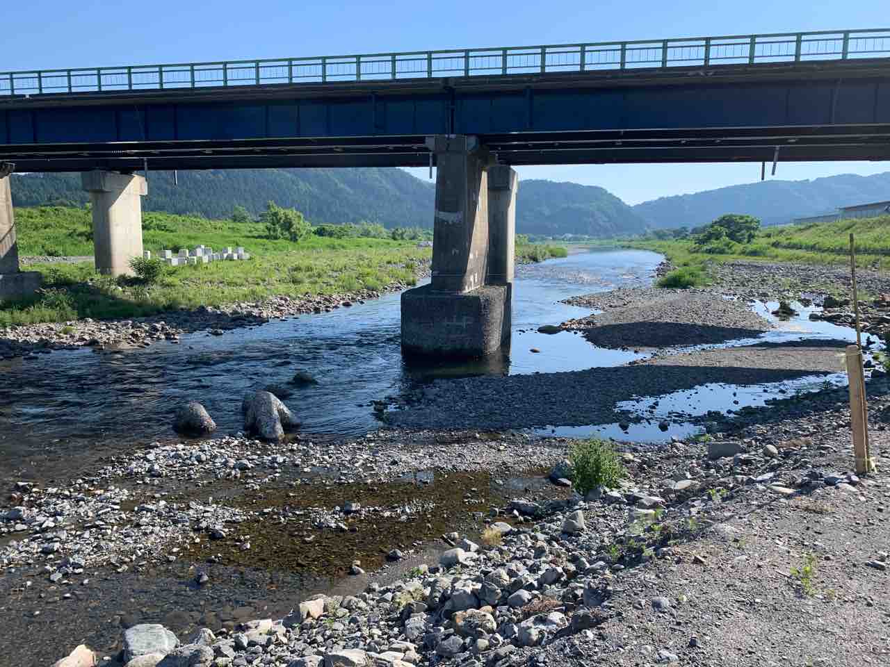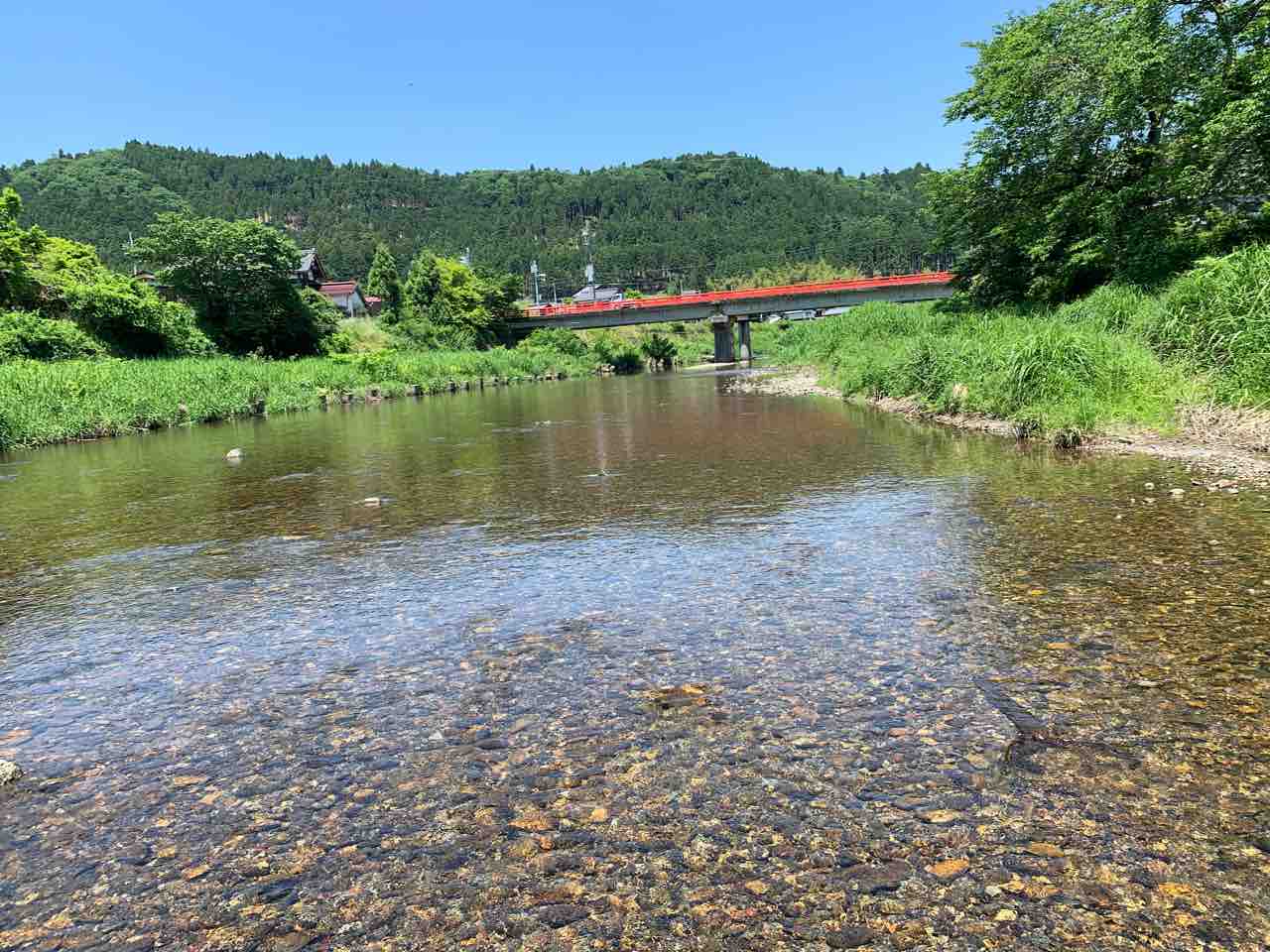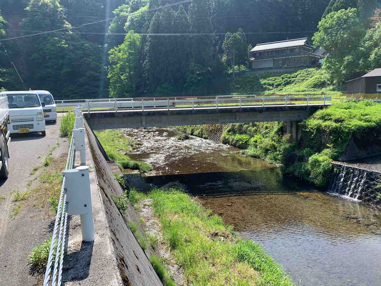 北川山神橋はゆったりと流れております。