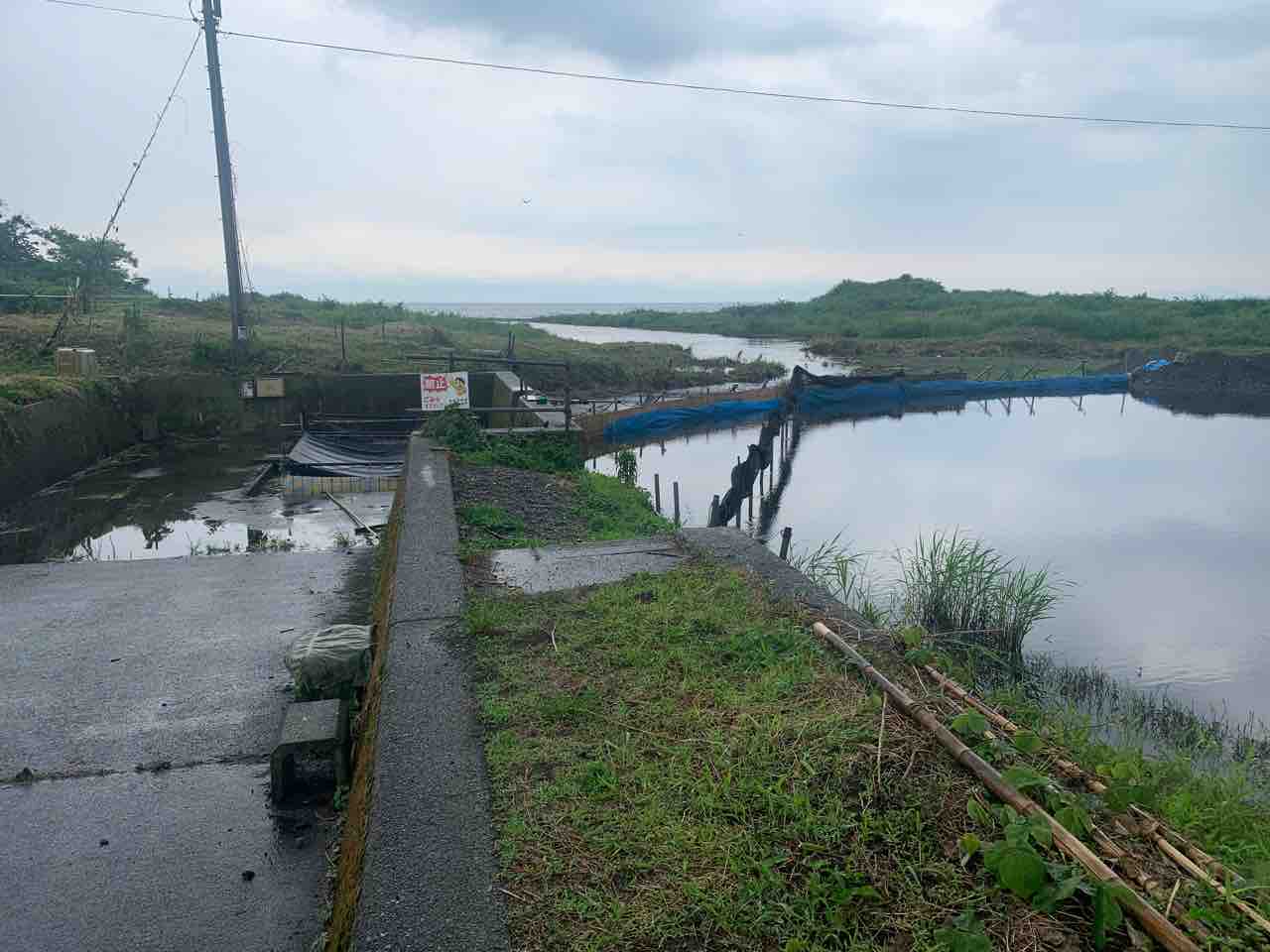 土砂降りの北川向所の橋の下で
