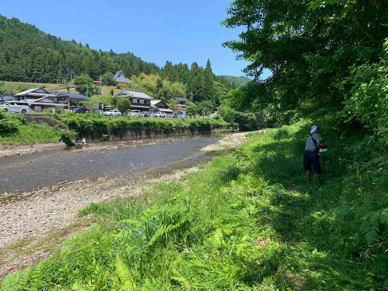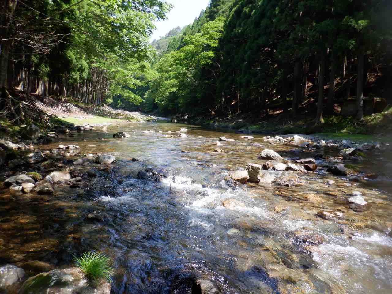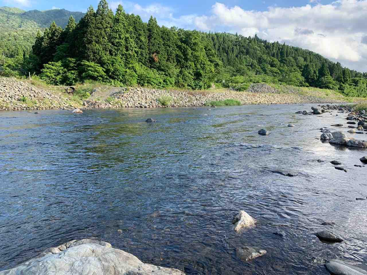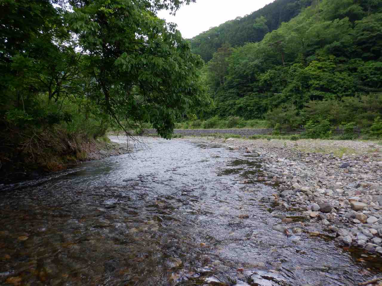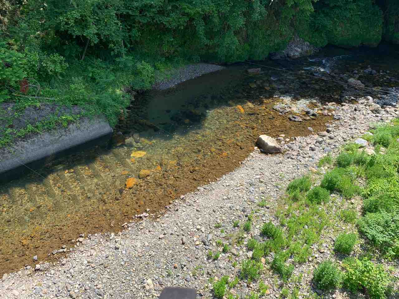 こんな日は支流の木陰が最高ですね。