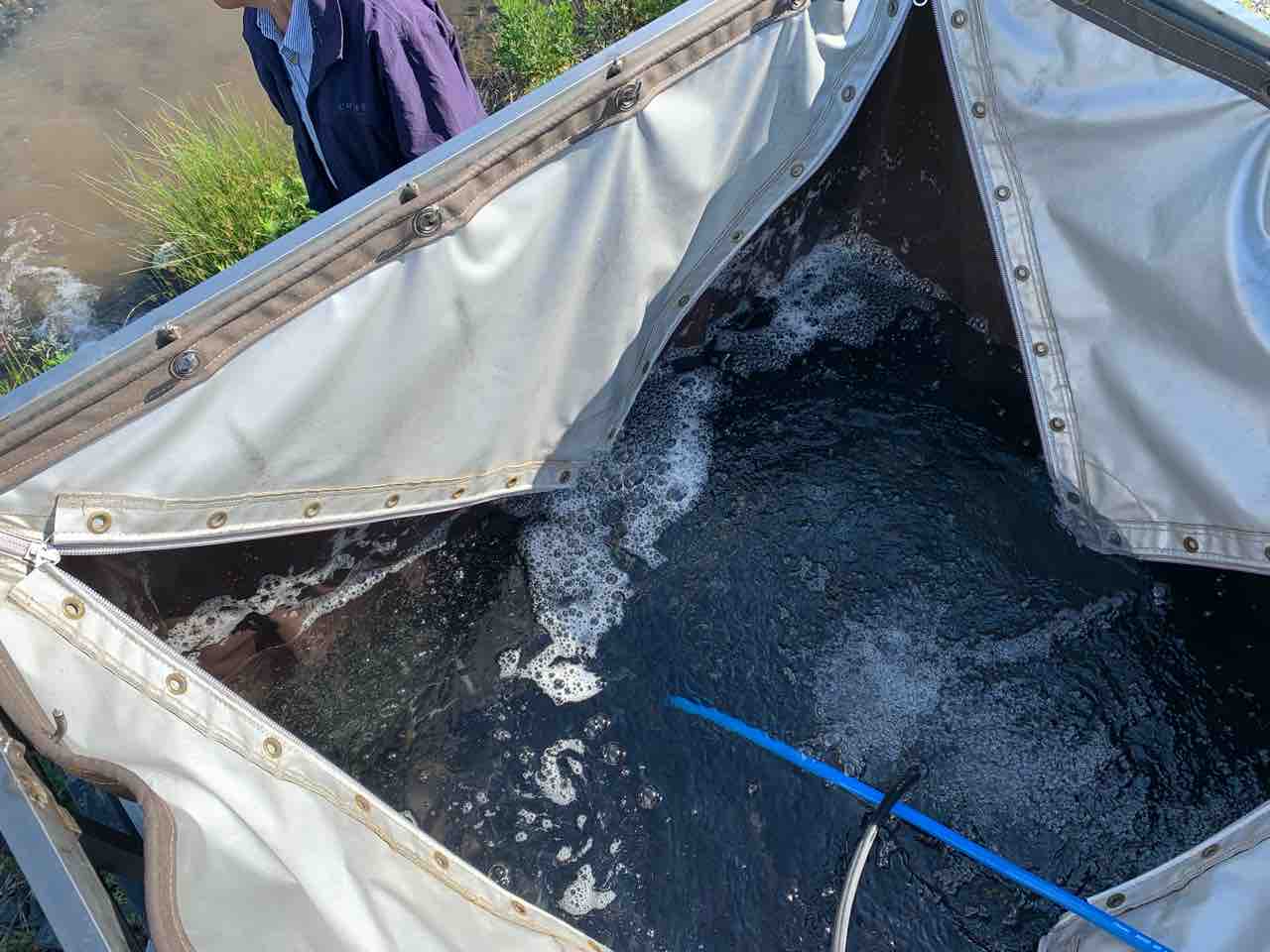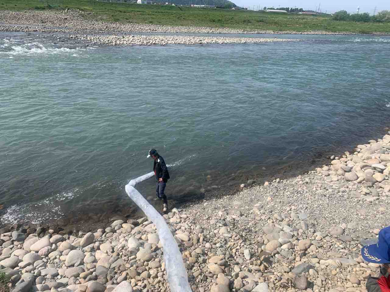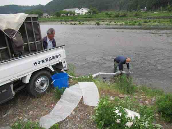 これから河口の遡上鮎の汲み上げ放流を