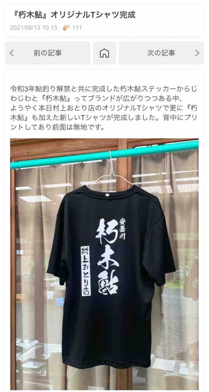 当店オリジナルの朽木鮎Tシャツは