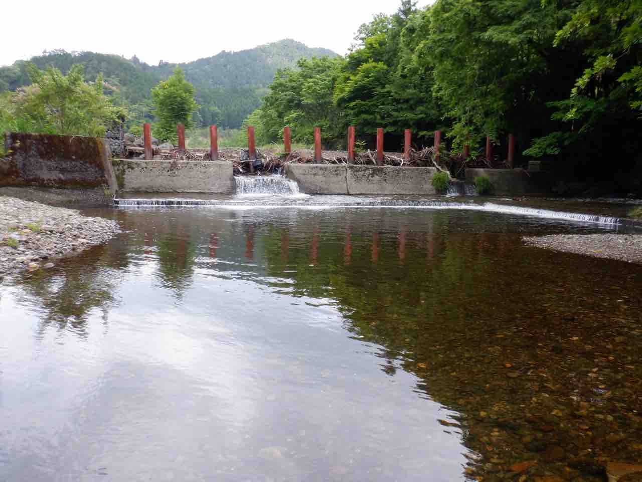 放流の帰りにヤナ場を見に行くが