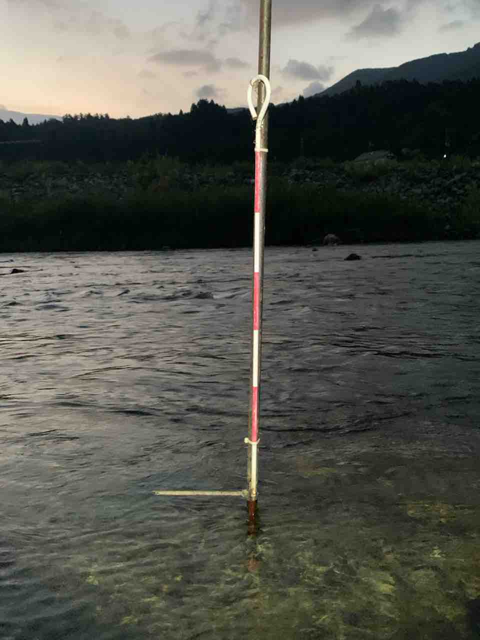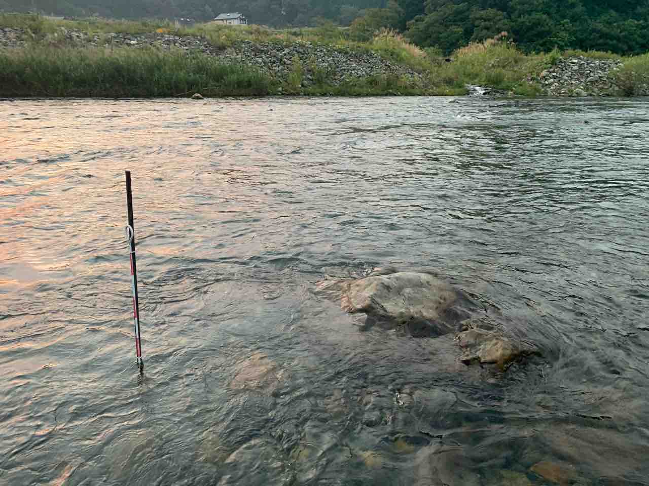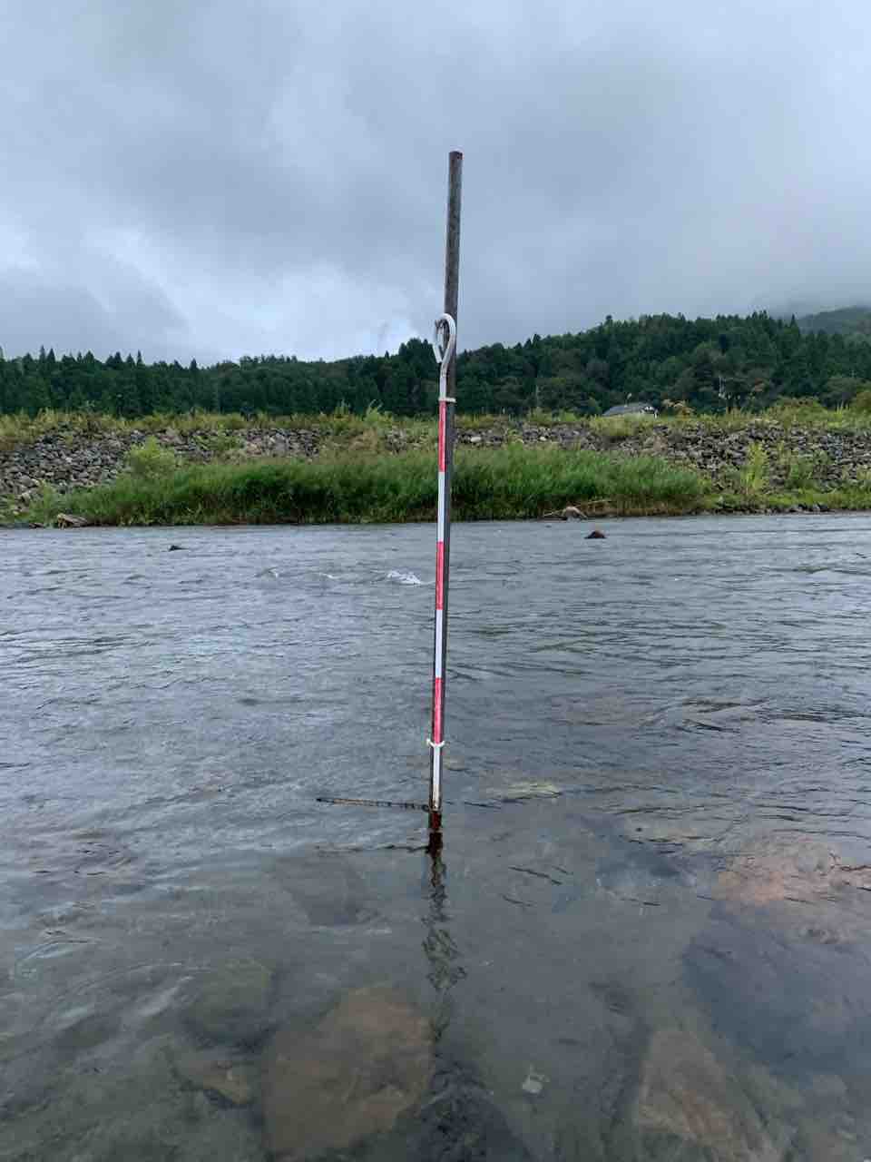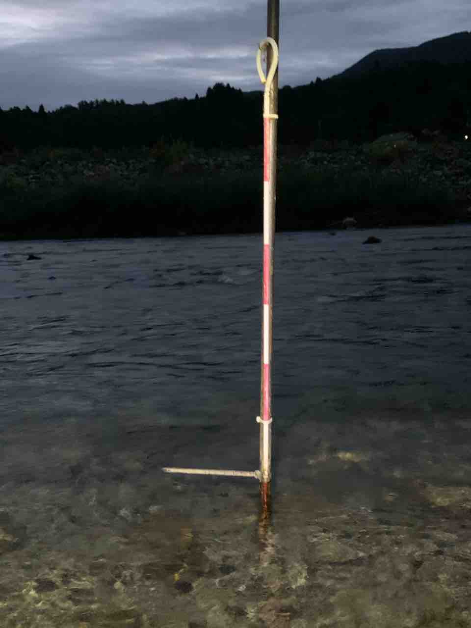 水位基準棒は明朝の水位確認の為に居残りしてもらいます。