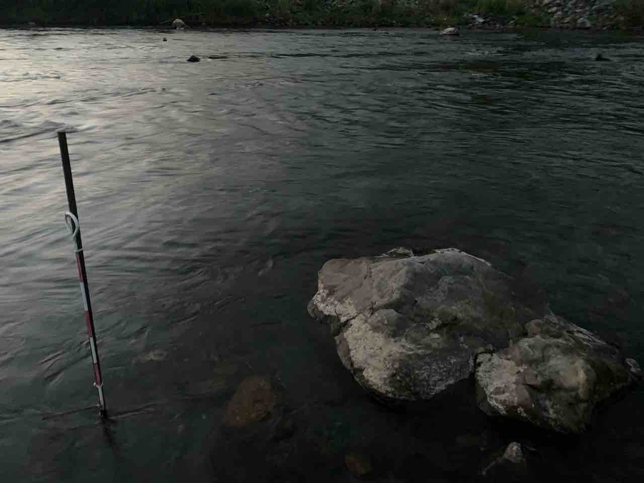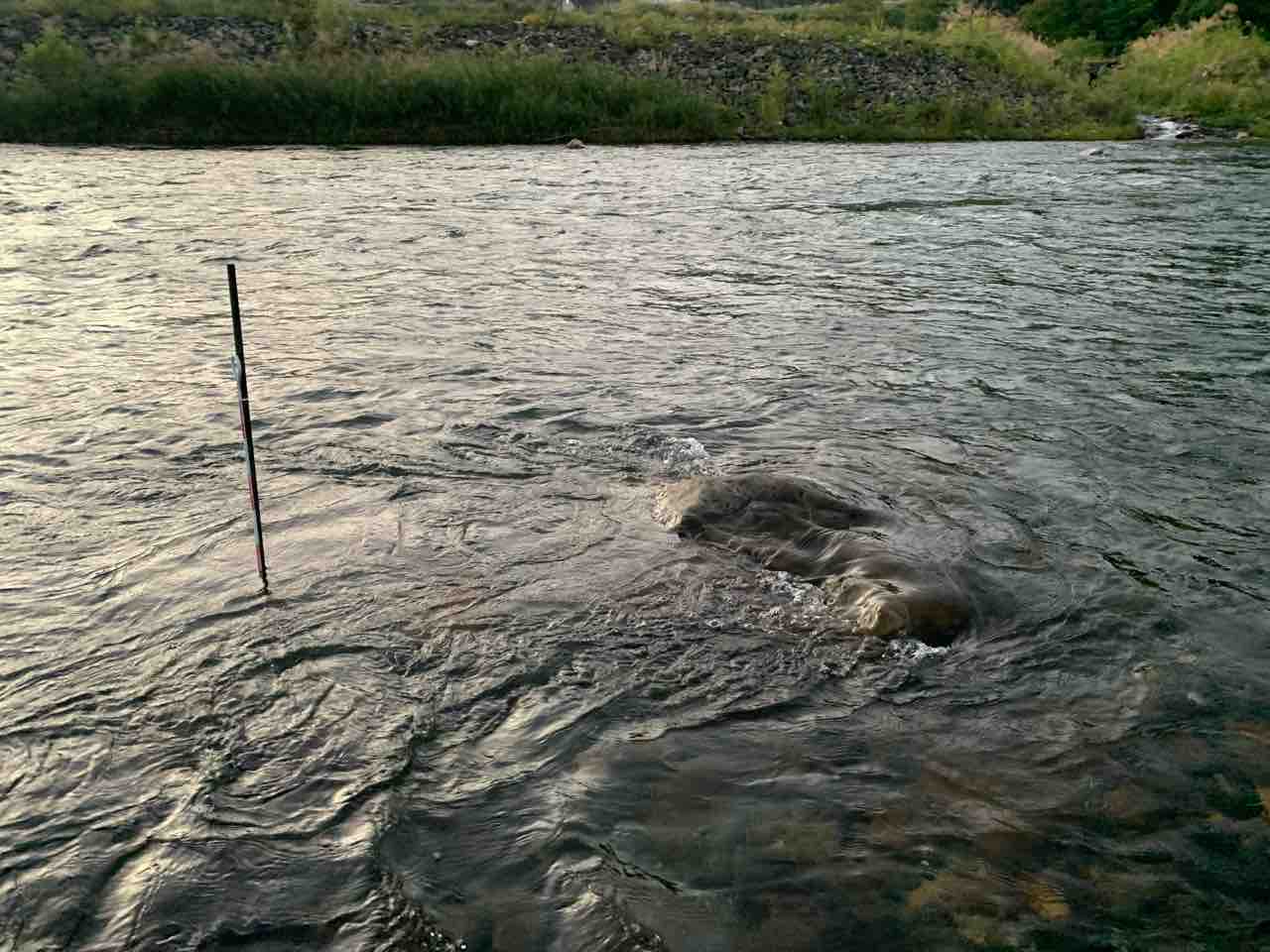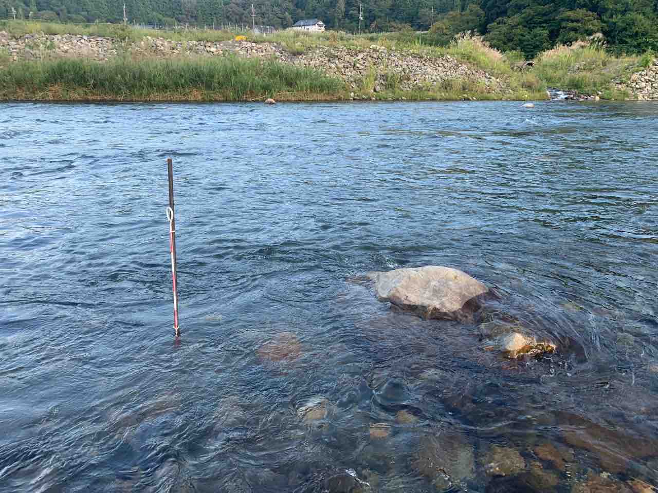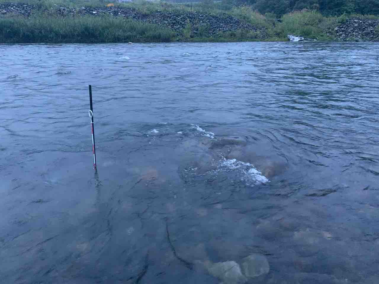 水位基準棒は明朝の水位確認の為に居残りしてもらいます。
