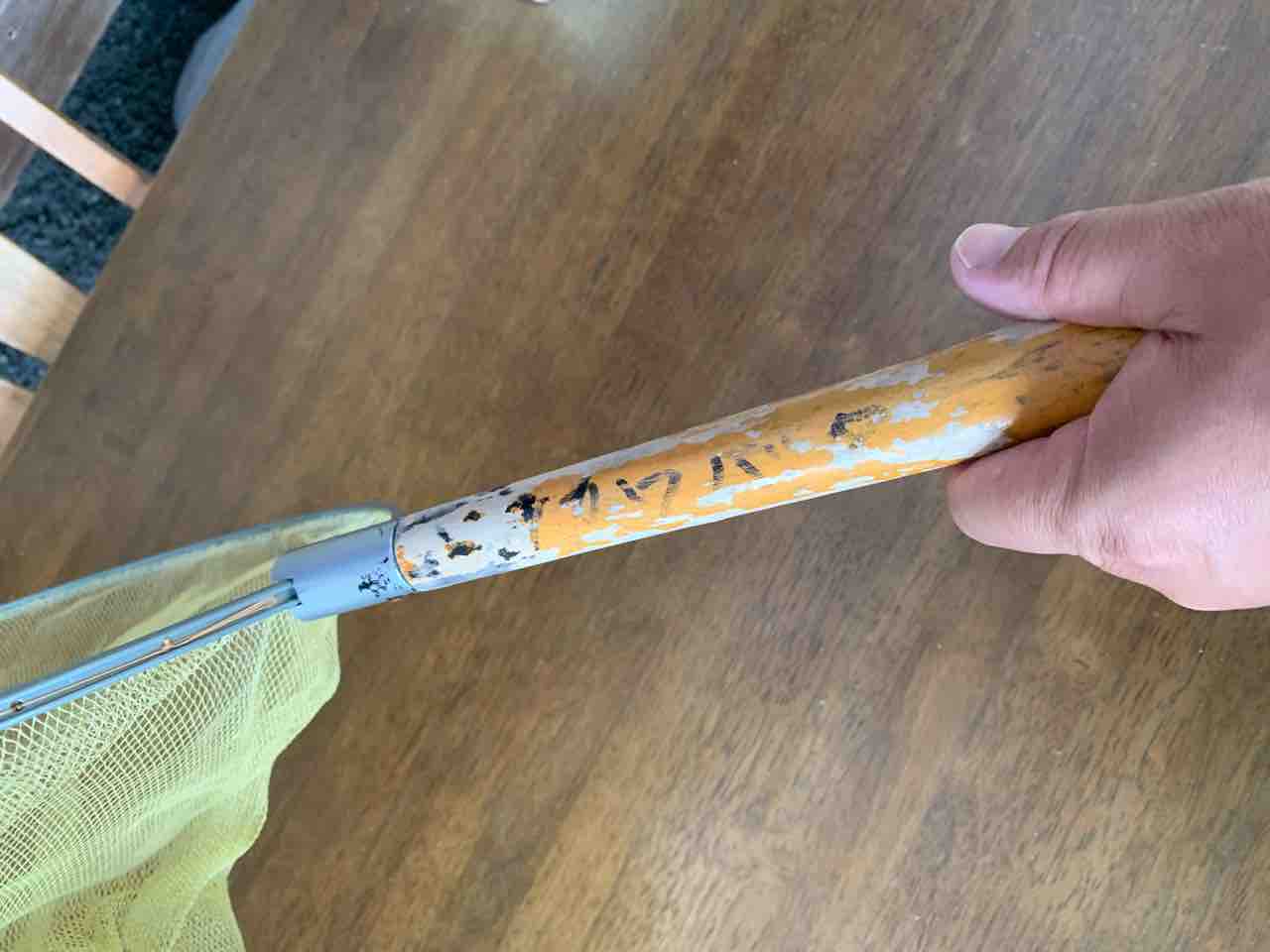 ↓柄にカワバタと氏名が書いてあるタモです。