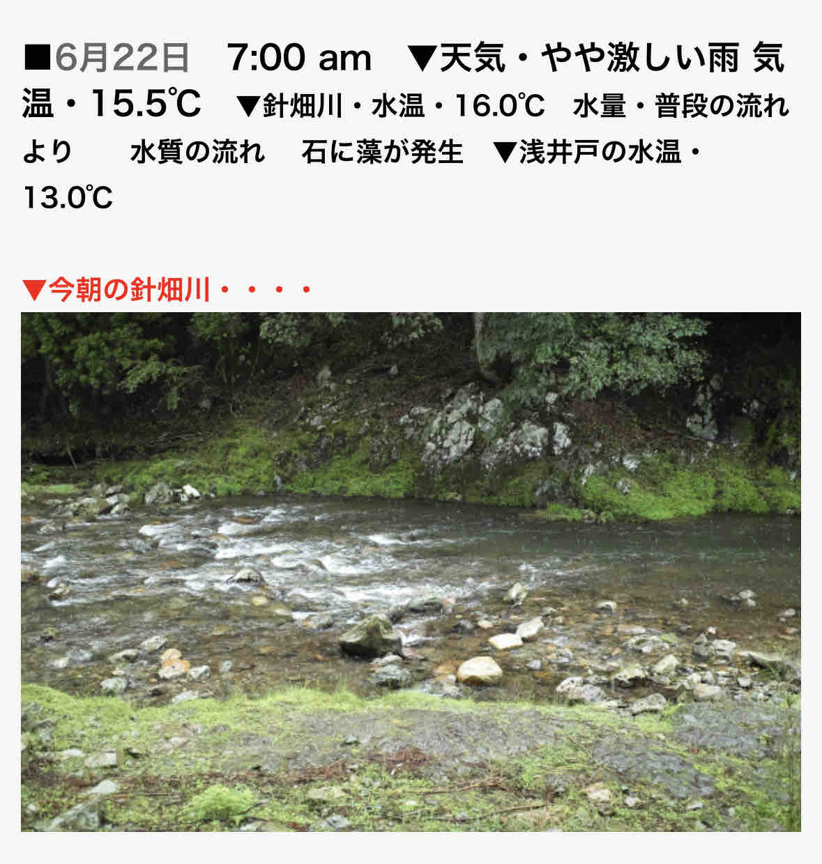 針畑川の情報は