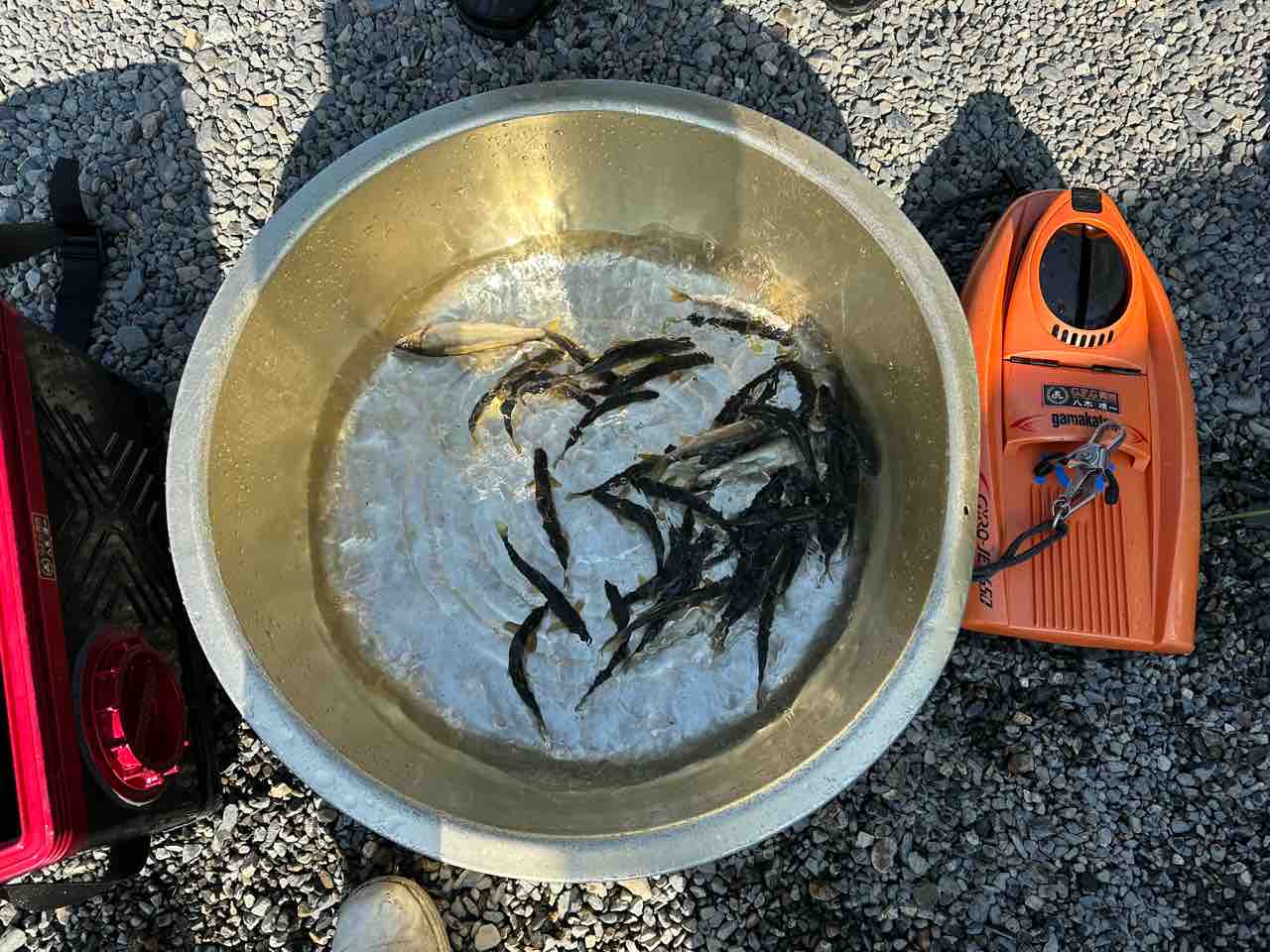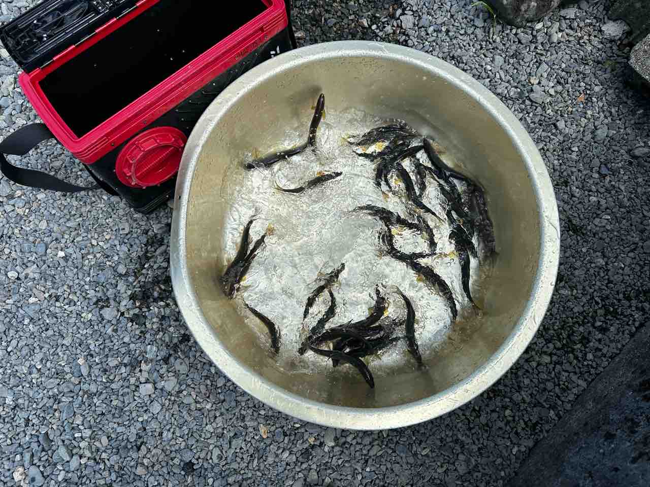 唐揚げサイズ放流にて38尾