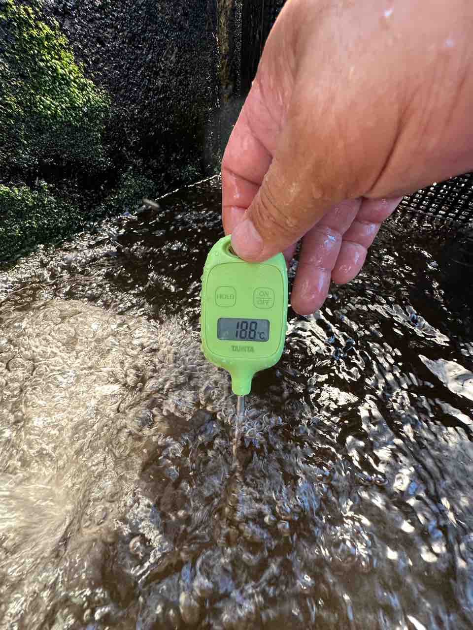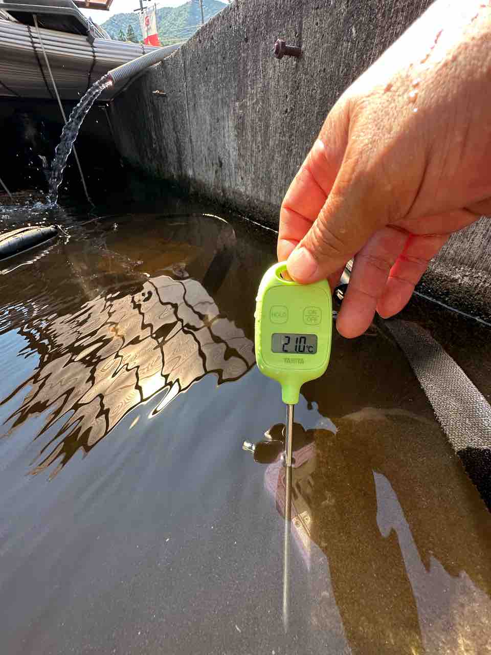 ↓当店のおとり鮎の水槽の水温は