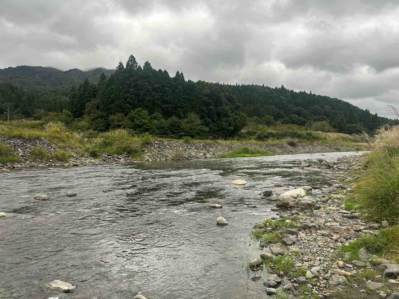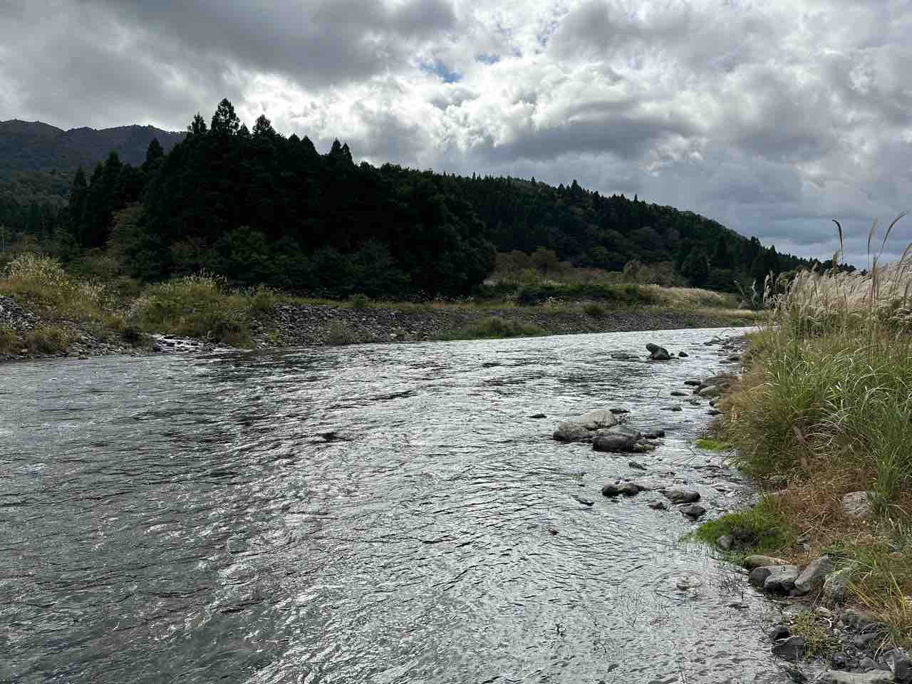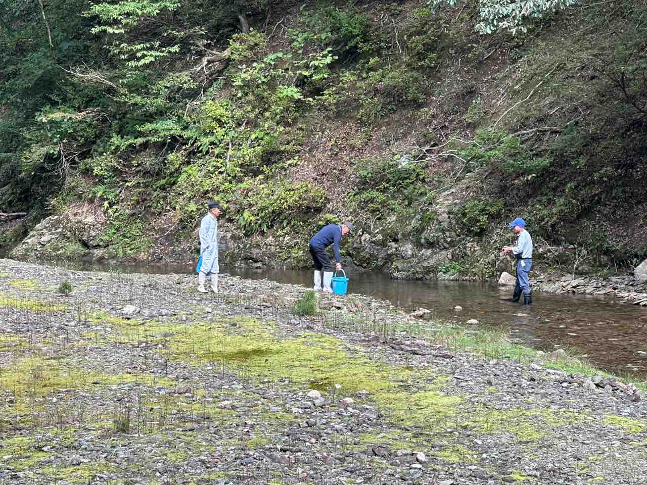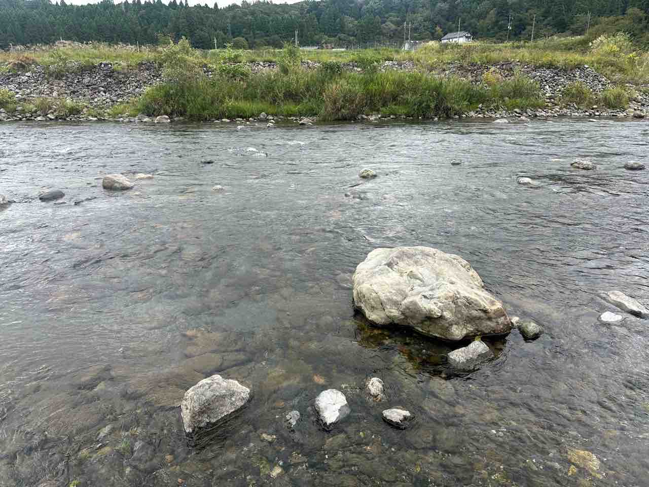 数尾の鮎を、当店前の安曇川本流に放流し