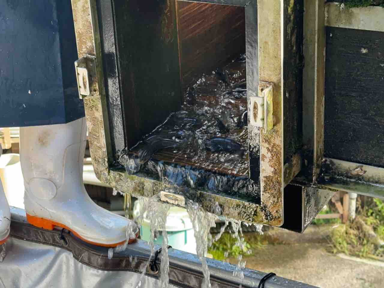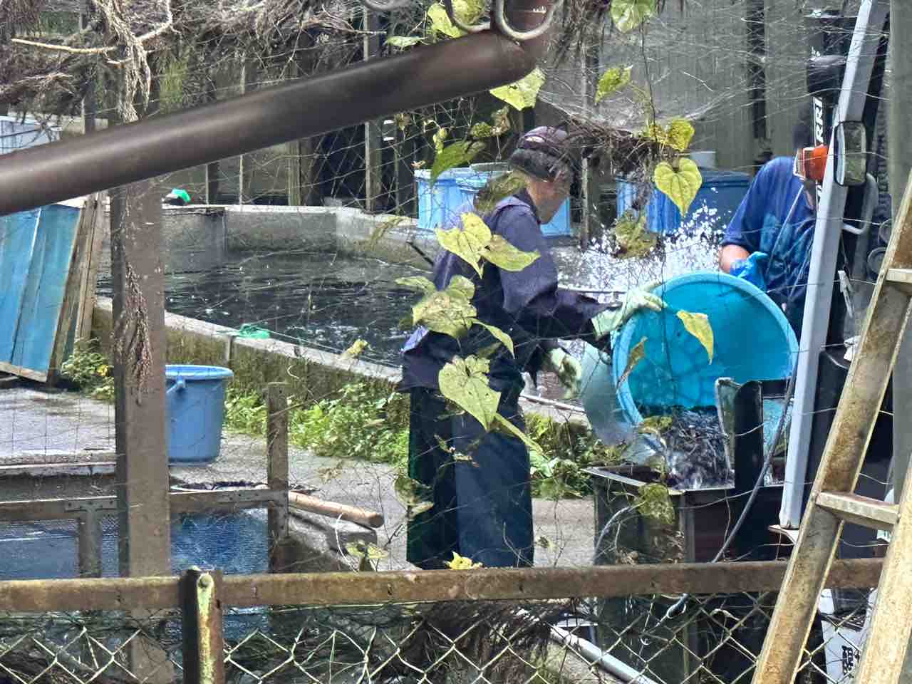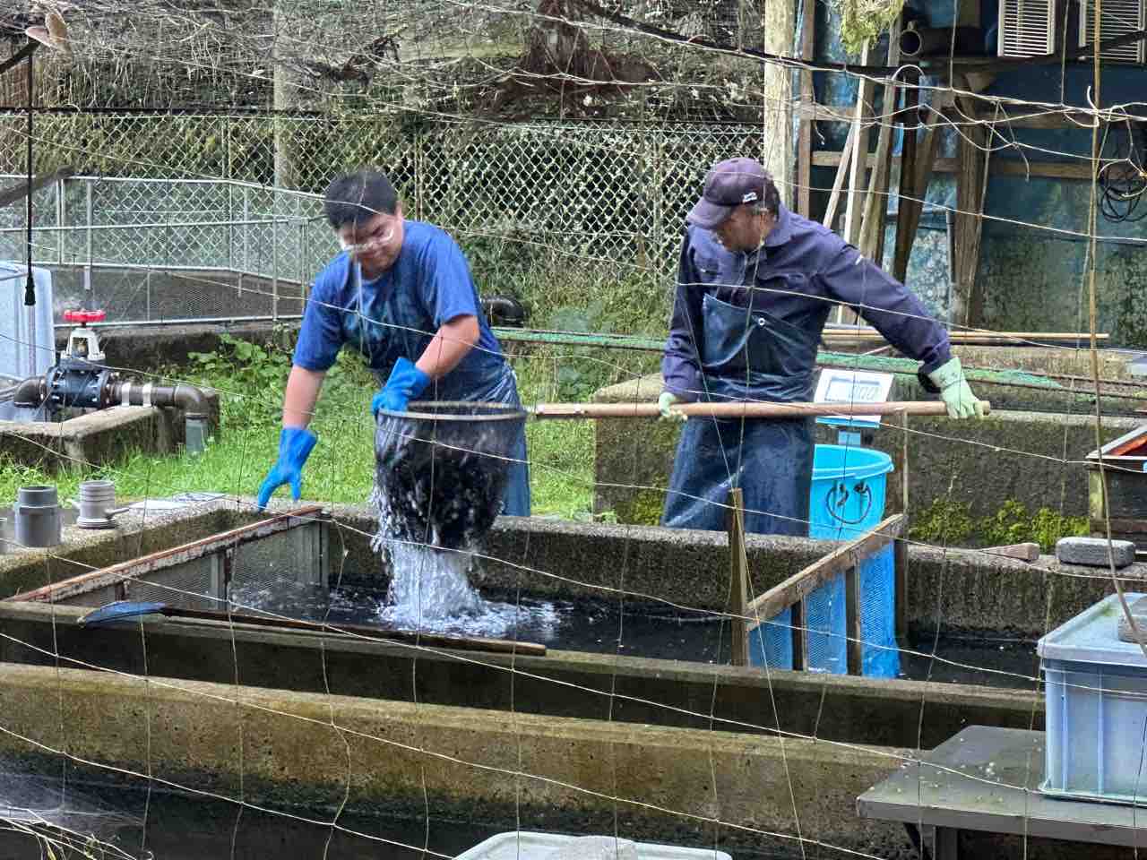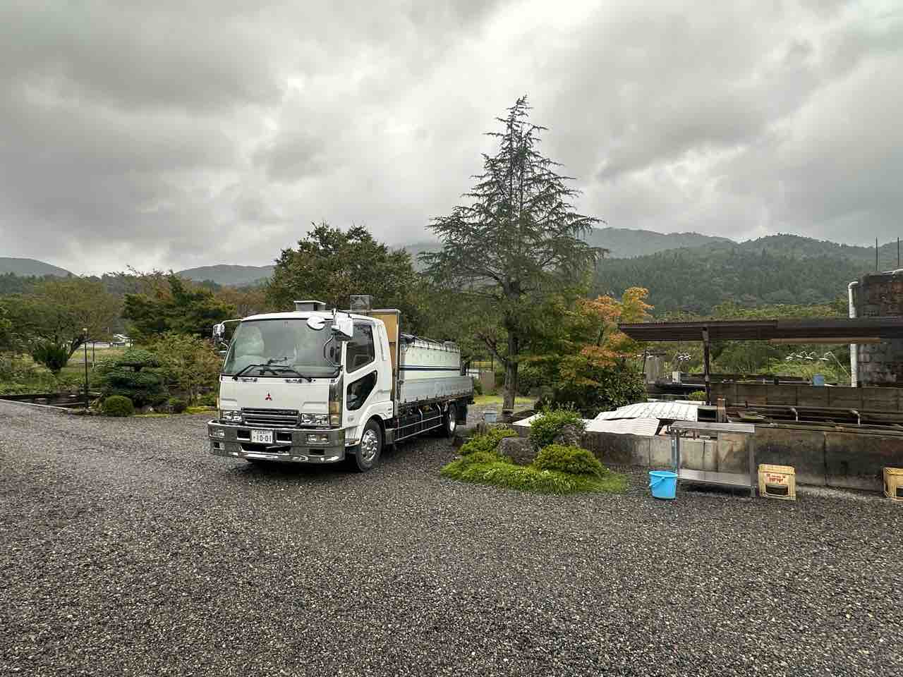 醒井養鱒場でイワナ13,000尾積込み