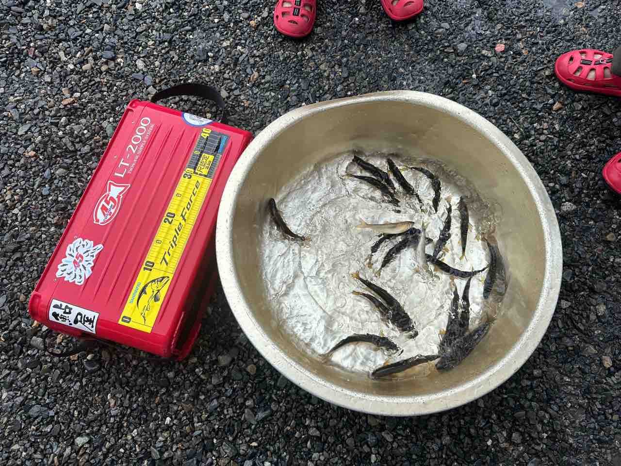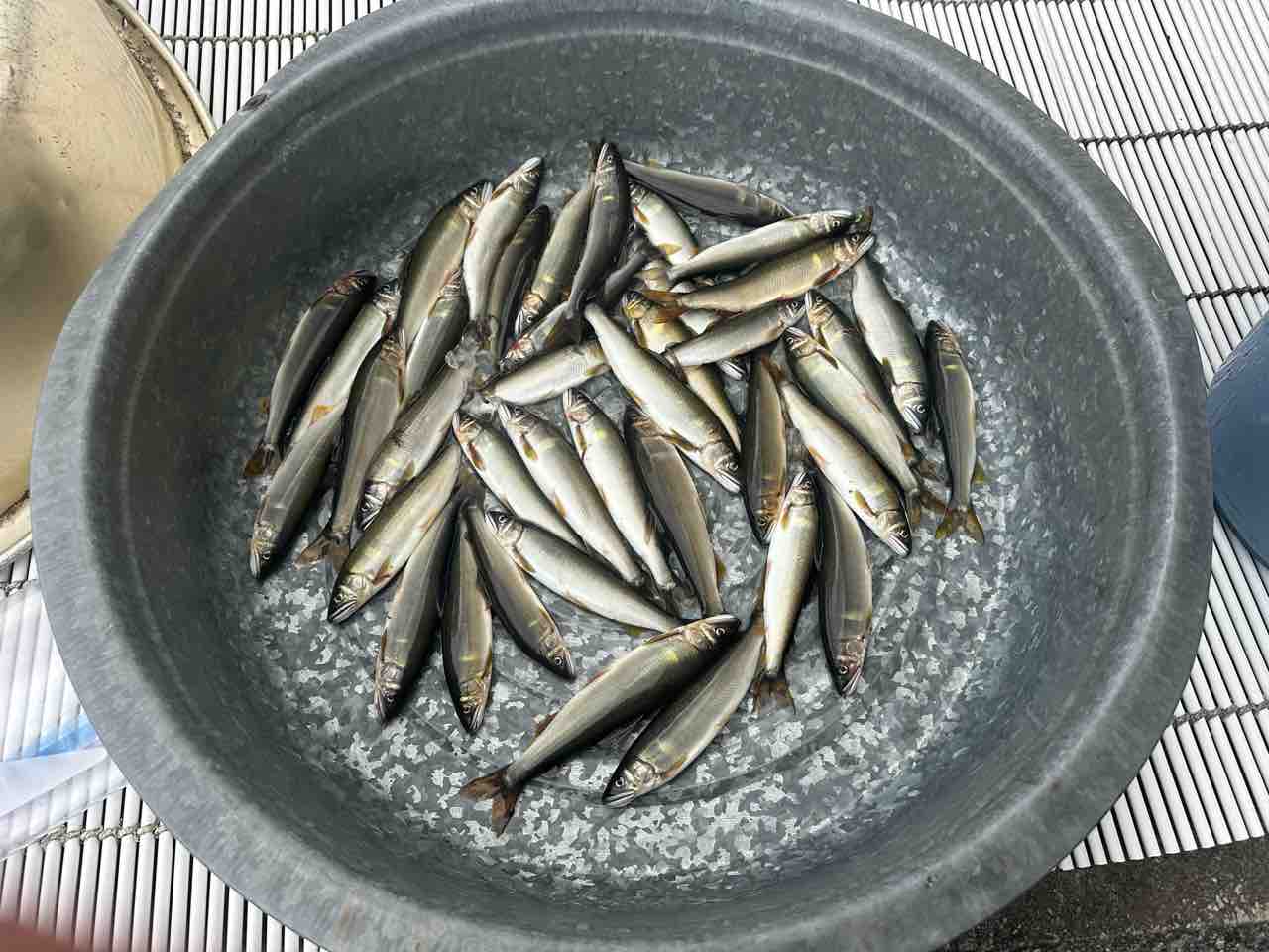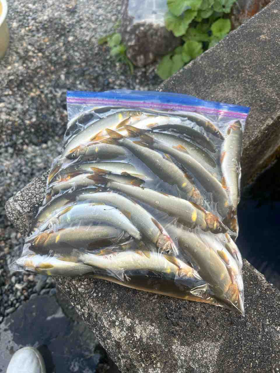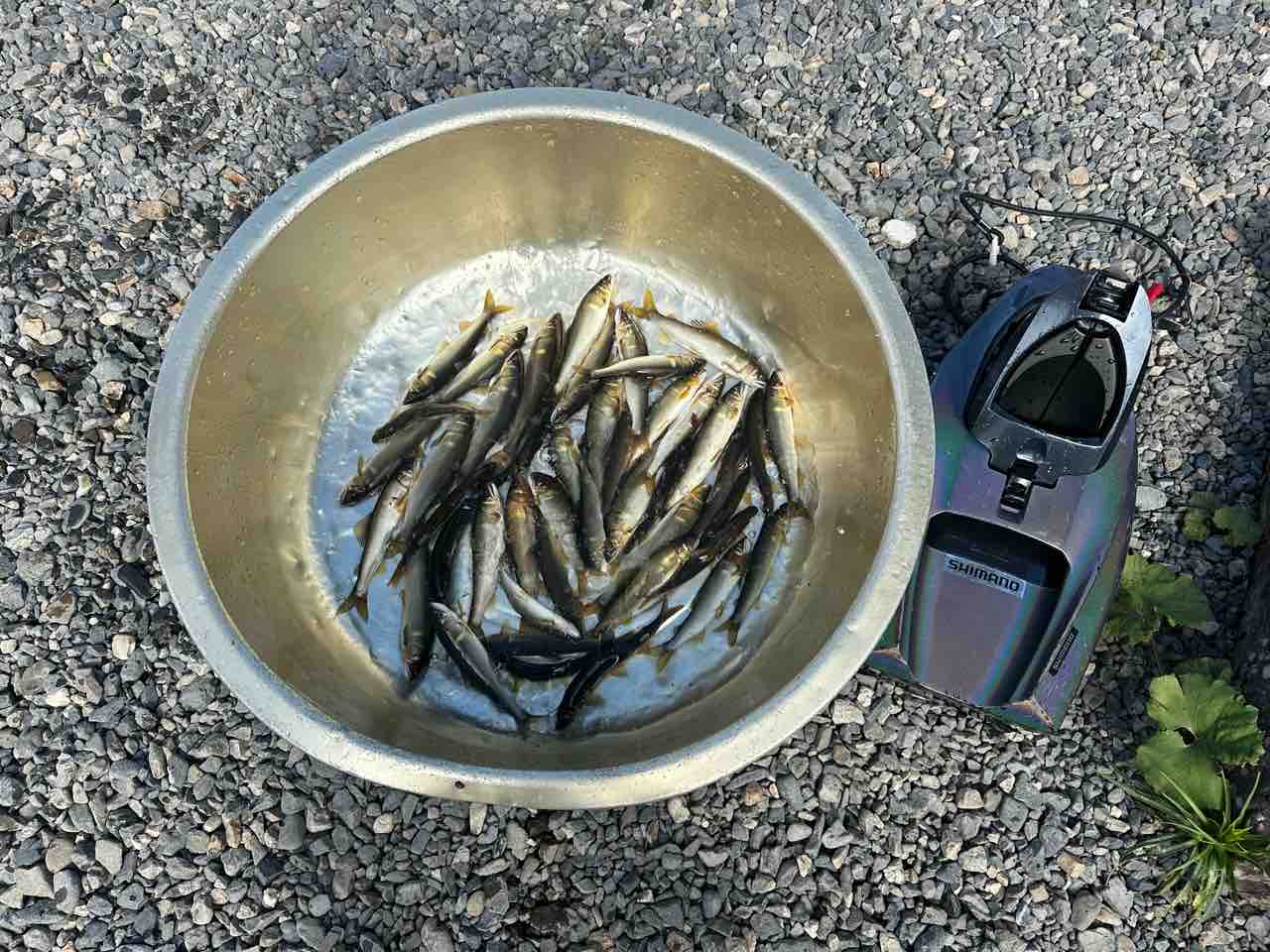 最後は小川あたりの岩盤やチャラ瀬狙いでぼちぼち釣れましたが、さすがに3連休の真ん中。