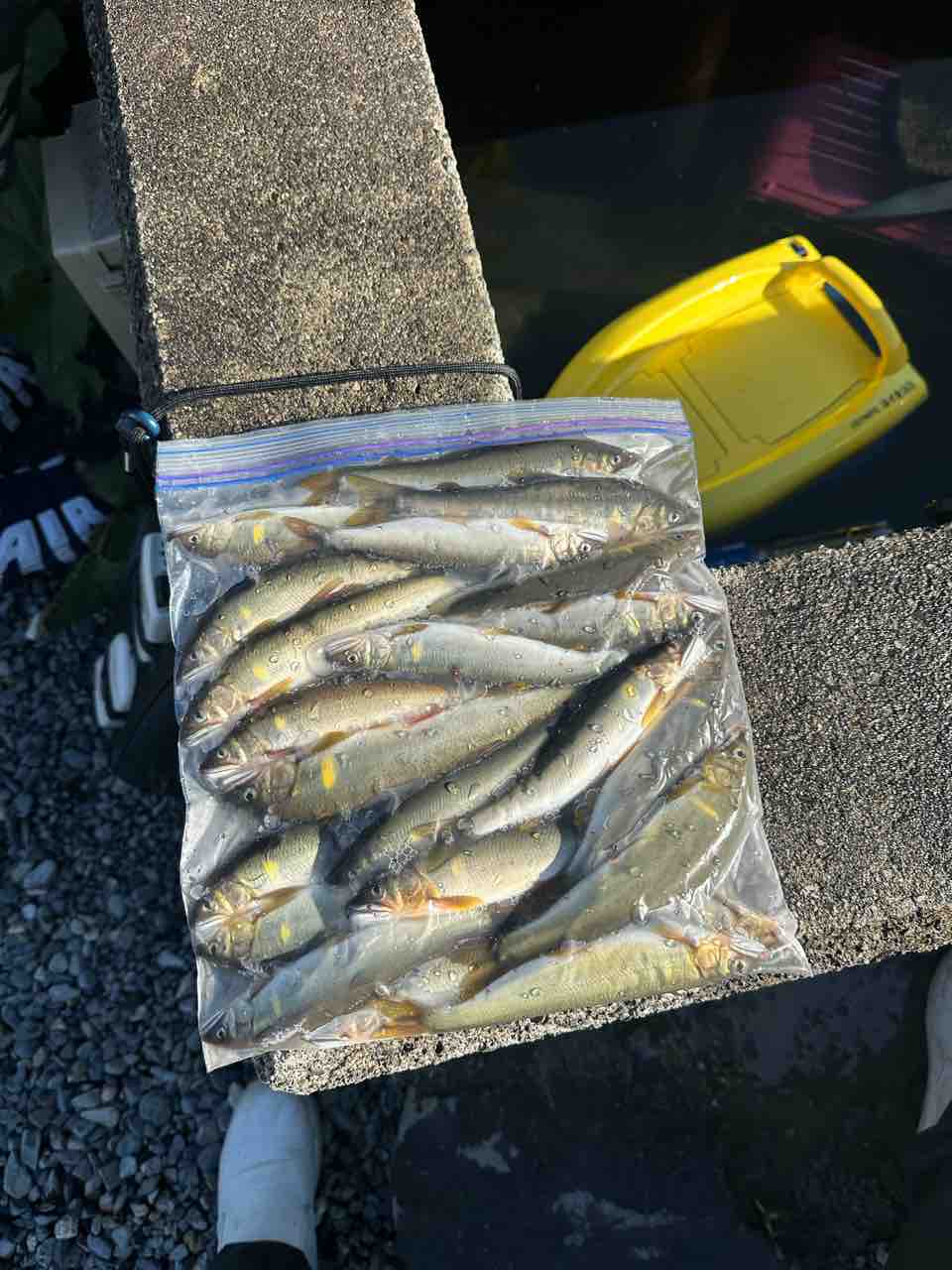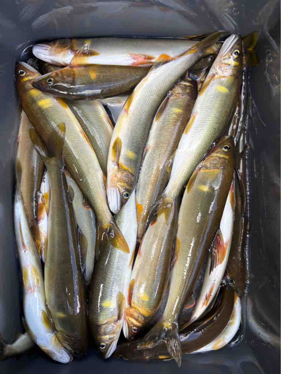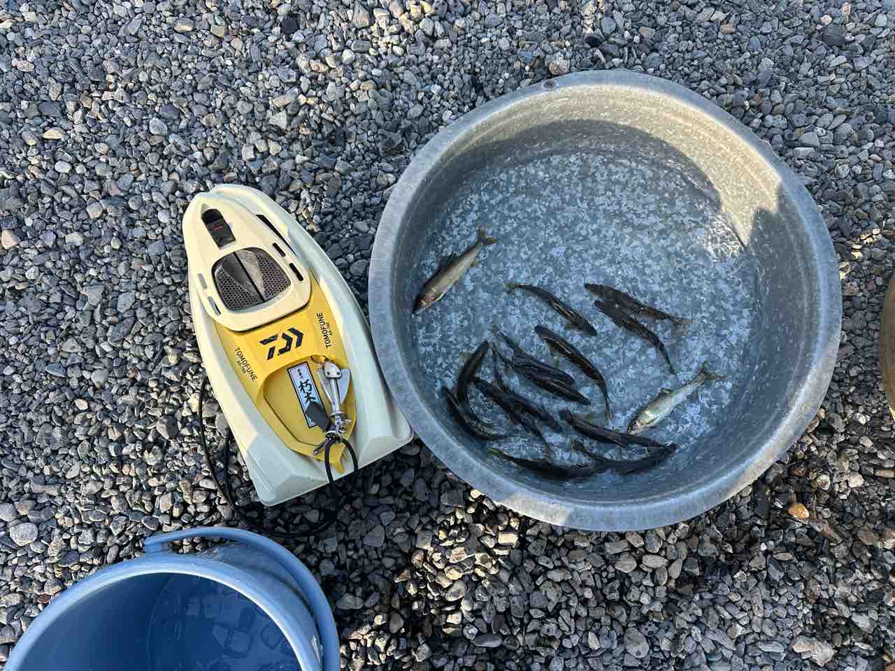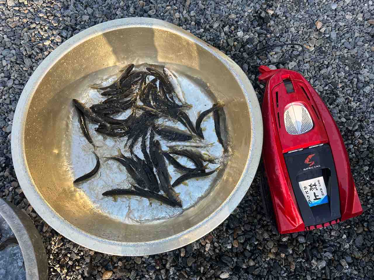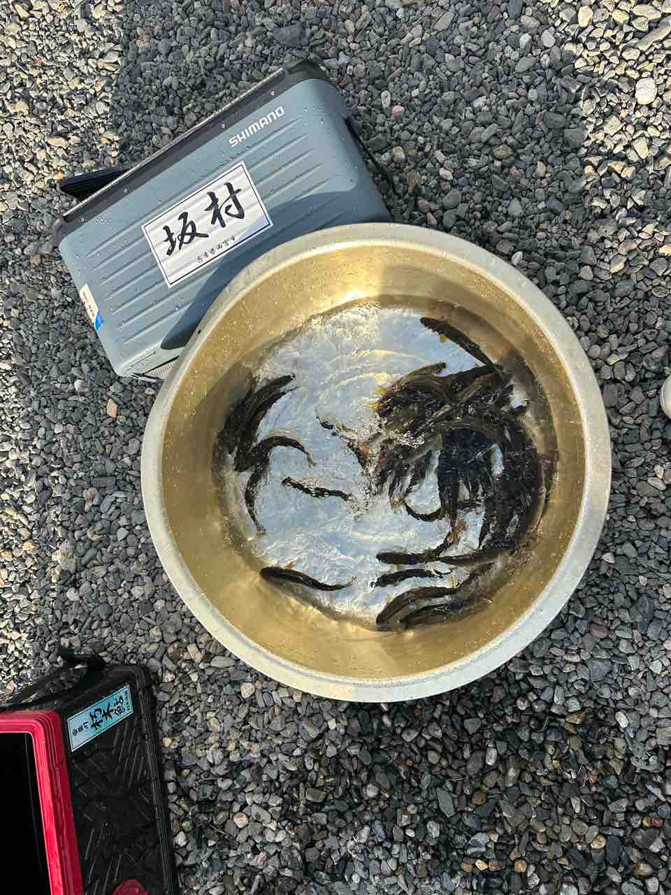 最後は小川あたりの岩盤やチャラ瀬狙いでぼちぼち釣れましたが、さすがに3連休の真ん中。
